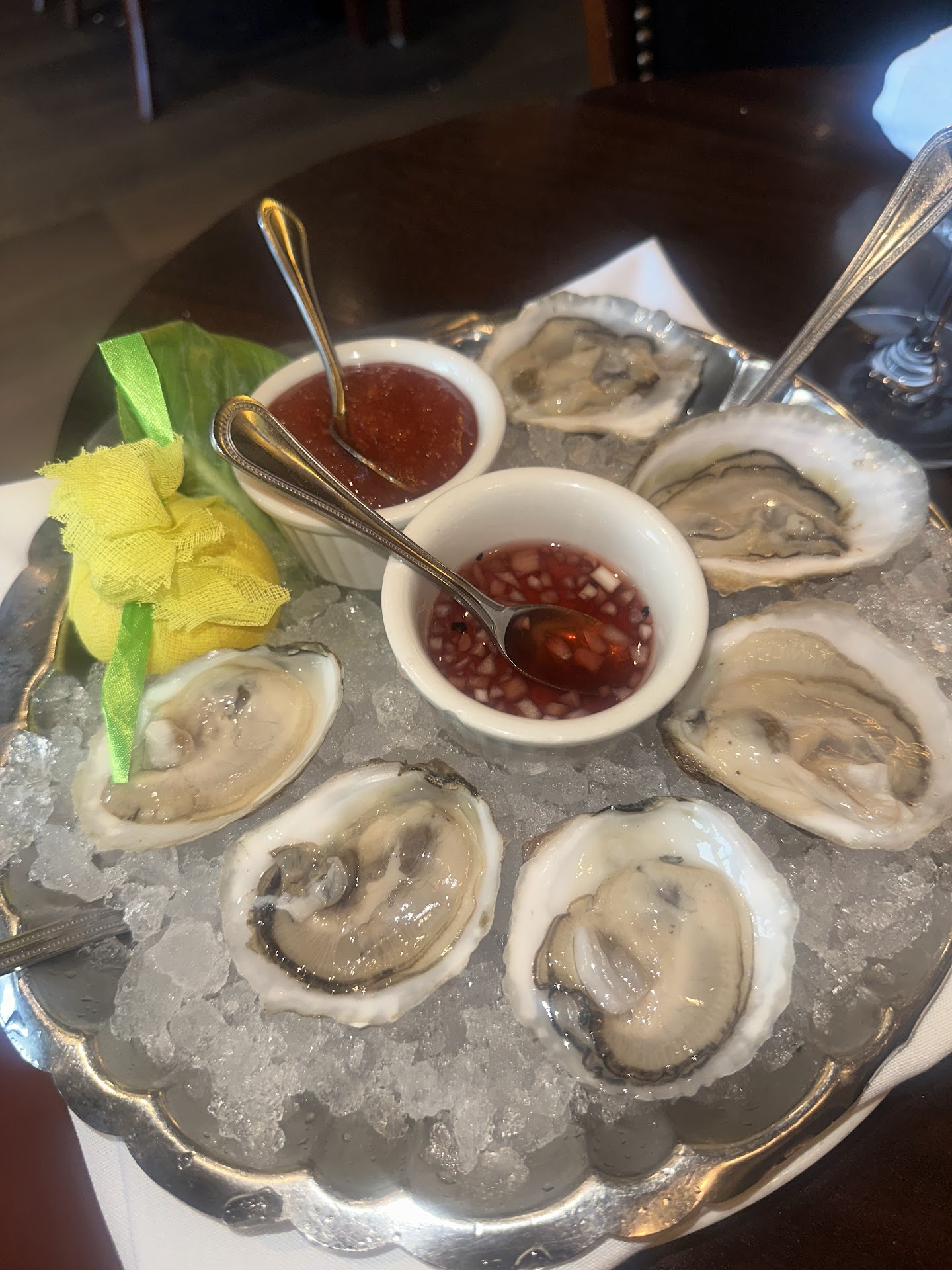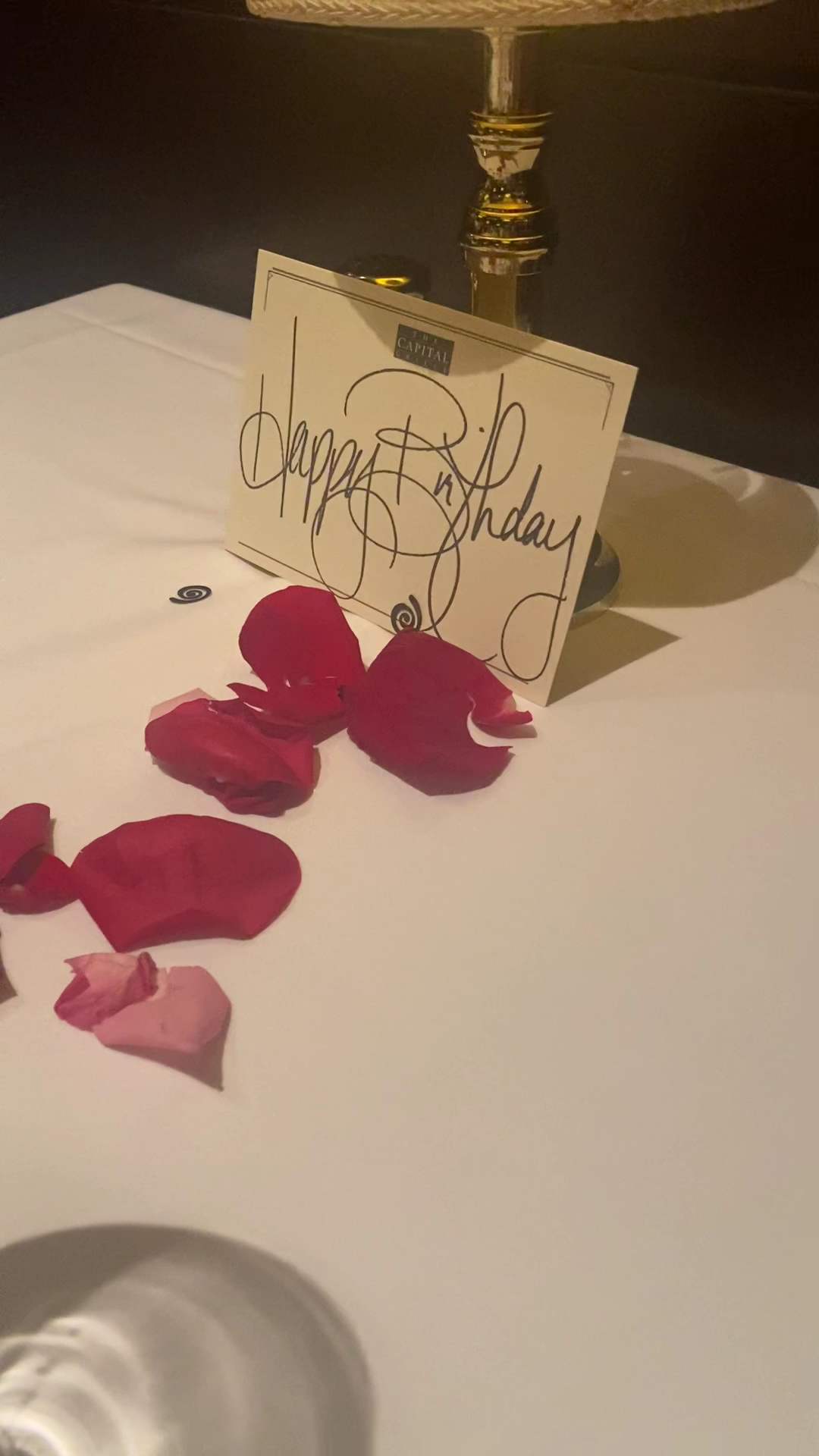We get to the table and there are rose pedals and confetti and a hand written happy birthday note from the capital grille! What a great touch! They also sat us in a booth that was perfect as the noise level was low so we could enjoy each others company.the environment was incredible, it was clean , refined and very relaxing.