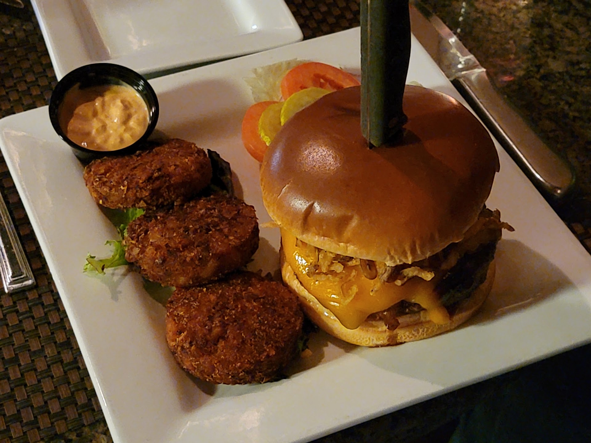 Here are a couple things I tried: Ceasar salad with housemade crab cakes -