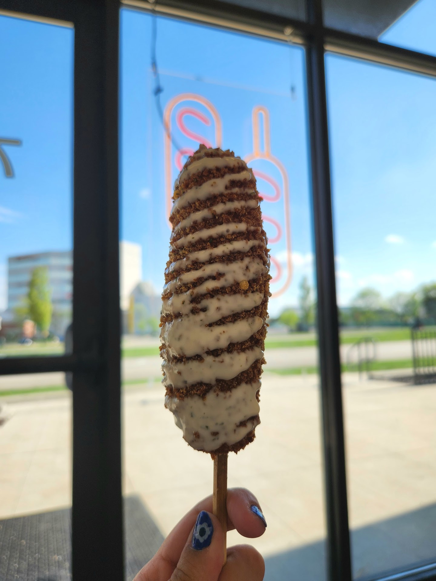 Read more1st time visit, placed my order online. Service was awful, I walked in and approached counter. Totally ignored then guy walked up to counter looking at floor entire time refusing to make eye contact did something on a tablet walked away. This happened twice absolutely refusing to acknowledge me. 3rd time I just said excuse me he looked up and I said I did a mobile order. He just pointed to side and said over there. So I walked to side and waited for order. A group of 4 walked in and must have been their first time as well I heard them say we love corn dogs we have to try this. The lady walked up and said hi to him as he was on the tablet again ignoring her and he just said go to the kiosk... I guess they want all orders there. Be nice if they had instructions for that. Butvunstead there is a sign in register saying "if we have a long line please use the kiosk to order" there was no line store was empty... gee wonder why.....Finally got my food and went back to hotel opened up and they looked delicious.... they are awful... ordered the 5 pack to try different ones and all awful. First insides were cold, breading was soo thick and inside undercooked. Outside tasted old, the fryer grease must be very old and has not been changed. Has that old burnt grease taste. Very dissatisfied took about 2 bites out of each and pitched them. Service awful wish I didn't do the online tip thing and food awful. Don't think I'll be back and a shame as I love corn dogs... guess I'll stick with the frozen ones I buy from Meijer until the fair comes...