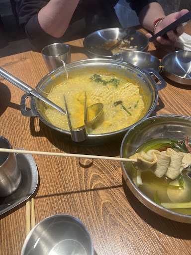 Everybody that works here is called John. The managerâs name is John. One of the waiters name is John. My name is John. The bathrooms are also called John. Itâs amazing here however, there is one waiter here who is just as nice as our John and his name is. HOYEON and in Korean it is pronounced John. Beef dishes are served with dinner. The chicken and seafood is veggies is served with lunch very unique different taste in terms of flavors that you can create create youâll see possibly some of the slides different flavors that you can combine especially the spicy up to the top spices thatâll melt your mouth even before you take a taste of it so if you like spicy or no spicy or whatever itâs pretty good it is kind of like a hot pot, but itâs itâs itâs a song unique flavor. I think itâs a fish broth that you use as a base and you add the seasoning and spices and you go up to the table and grab all the stuff that you want for your meal and they will gladly give you new pots to cook with and the servers are very well trained very polite and putting up with a customer like me thatâs amazing and the manager even put up with me and but since his name is John, I can forgive him. This is the only place in the United States outside of Manhattan so itâs a one-of-a-kind opportunity for you to explore with your taste buds vision and camaraderie with the people you love.