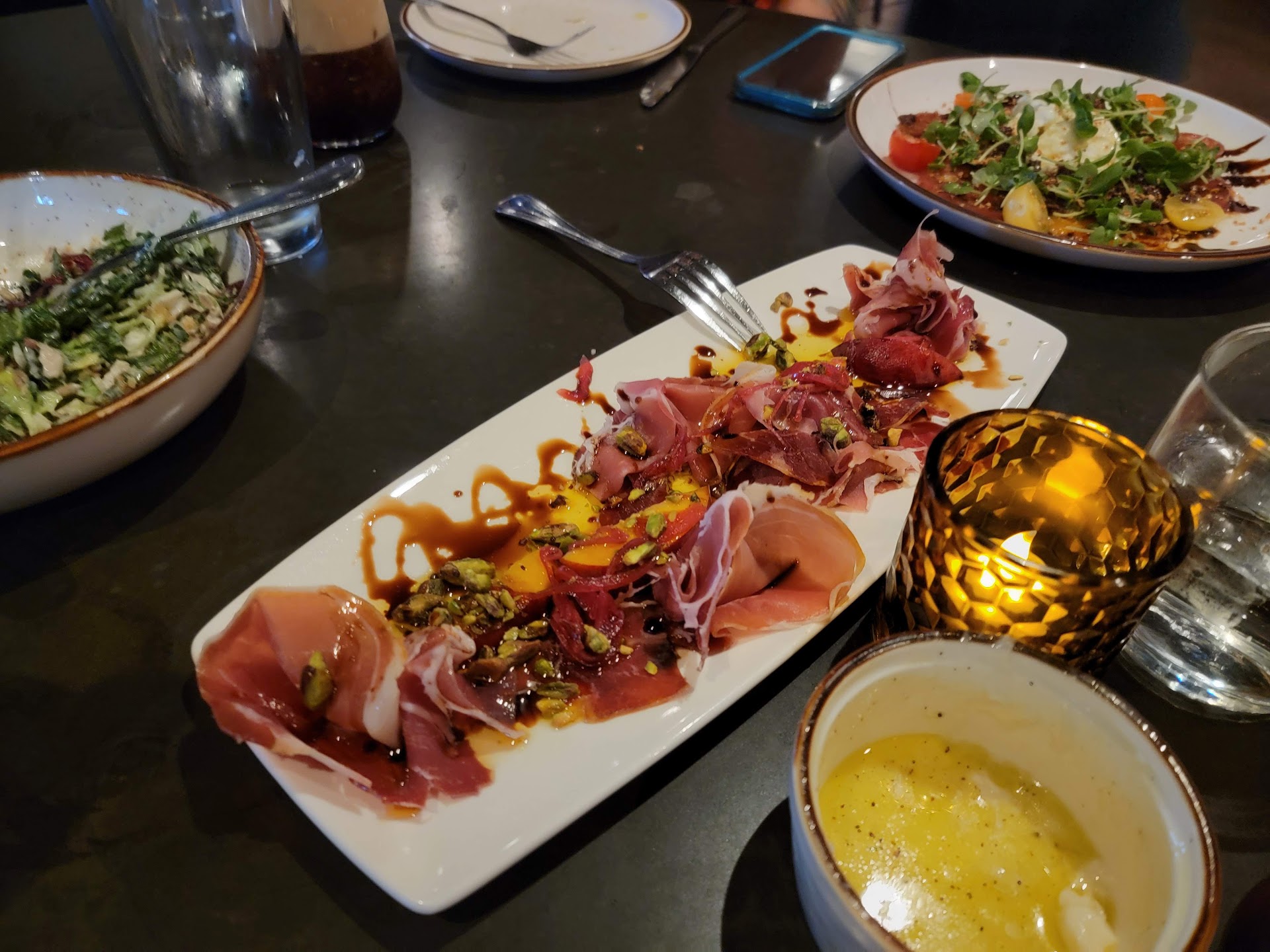 With the pizzas, I loved the crust! Such a nice texture and the right amount of bite without being too chewy or crunchy. The fennel sausage we liked, but we were a little meh on the margherita. Felt like it needed just a little more basil and cheese. Had one slice that was mostly sauce, which was good for what it was, but not what I was going for.