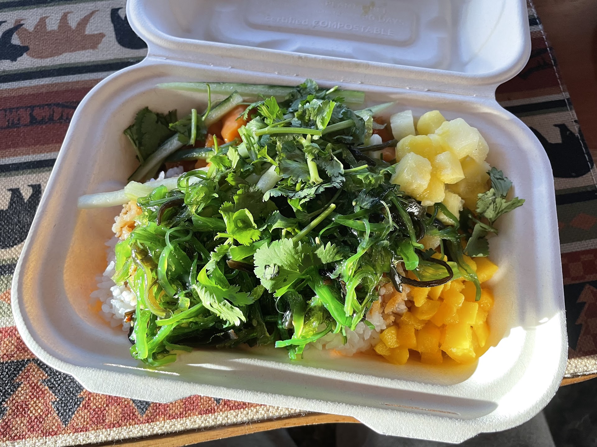 When the owner greeted me with, āYou want something?ā, I knew it was going to be good. The fish and ingredients were fresh and the portions more than fair! After a hungry day of skiing, fresh Poke is a fantastic, healthy option to wind down the day. As a hungry dude, I wouldnāt get anything less than a large. Also I greatly appreciate getting all of the ingredients and a free water!
