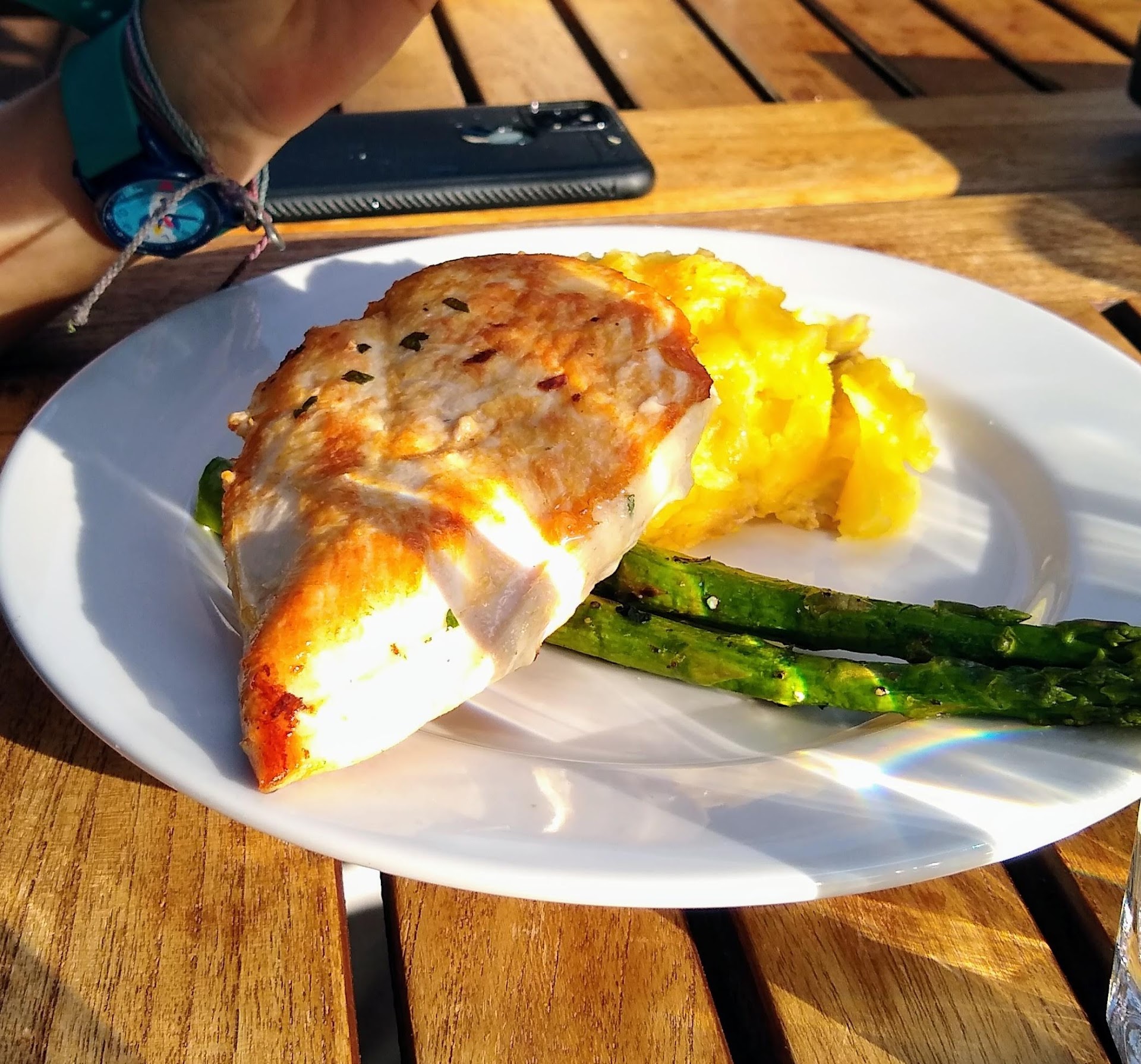 We recently went to dinner at The Lodge Restaurant with three young children and four adults. We dined on the deck overlooking a portion of the golf course. While the restaurant has a limited menu it has ample variety including appetizers, bistro options, main course choices and specials. A great option for children is their pre-fixe three course meal at a reasonable price. Our adult choices this evening included prime rib (perfectly cooked), 2 fish specials of black cod and a vegetarian option of polenta and roasted vegetables. All the meals had ample portion size, were not over-seasoned and were enjoyed by all. The charcuterie board ordered as an appetizer on the other hand I thought, was meager given the cost. The children's meals came with brownie and ice cream for dessert while the mini-donuts with two dipping sauces option was a hit with the adults.