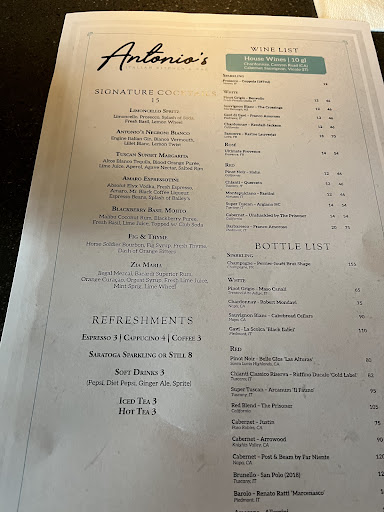 We had a 5:30 reservation and were there until 8pm because we were begging for our check. Things started off okay, we ordered drinks and apps and then our waitress completely disappeared. I don't think we interacted again with her until we finally asked for the check. We hunted someone down to take our dinner order. We had to go up to the bar to ask for more cocktails as no one ever came back to ask us if we needed anything else. Our appetizer plates were still on the table when the food finally arrived so we were clearing off the table ourselves to make room for the new dishes. We ordered dessert when they were delivering our dinner because we knew it would never come out unless we did. When we finished our dinners, we asked the host to check on our desserts. It took another 15-20 minutes to come out. The staff thought it would be a good idea to bring 6 desserts out while our dinner plates were still sitting in front of us. Once again, we were stacking the plates on the table so we could make room. It was disgusting and not enjoyable. I think there was only 1 waitress running around the entire restaurant. When I asked her for our check, she snapped at me and said she was having a bad night and walked away!!!!! We were very patient with the staffing situation until they started to get rude. NOT OUR FAULT they were over capacity and couldn't manage the seatings. Food was good but considering the cost and service, we will not go back. Consider take out! I hope the management at Antonio's addresses the issues because its hard to see so many businesses come and go from our town! Wishing...