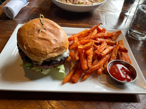 First time there with my wife to meet her colleague for lunch on a Saturday afternoon, 1 pm. We sat outside because there was a 20 minute or so wait inside. My wife asked for the garlic bread to start munching while the regular food was cooking figuring it should come out quickly to tide us over. After about 15 mins, the garlic bread didn't come. About 5 mins or so more, everything came together: 2 seperate salads each with chicken, my burger, & said garlic bread which was supposed to be the app. There was one side of ketchup on my plate, so I immediately asked for another. I don't understand why restaurants don't bring a bottle instead of doling out tiny ramekins of ketchup, its a hassel to ask for & then wait for more to come. In this case, I was waiting longer for the second ketchup longer than it took to eat the burger & what fries I could with the first ketchup. I asked for med well burger which came out rare. Seeing how long it took to get my ketchup, I didn't even bother to discuss the burger temp since I was hungry & as I ate said burger, finished it, and waited so long for the server to bring the other ketchup, it was moot. For a first impression, not good. If a kitchen can't get a temp right on a burger on a saturday afternoon, I don't have much confidence in anything off the grill if it even remotely busy. I didn't pick this place, my wife says they eat there on lunch from work. After this, it wouldn't be too high on my list for returning. If the slight chance I do, I'll give another review. My opinion might sound a bit harsh, but I worked in a restaurant for over 5 years, 4 of which I cooked. Its not super difficult to temp meat, but if the server asks for a temp, the kitchen should be able to deliver which they did not...