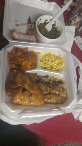 Read moreWell, we been waiting for a while to try this place and…… Service was amazing, the girl at the counter was nice. The prices SCARED ME!!! But I’m like if it’s good then it’s worth it. We paid $63 for me and my husband…. For me I didn’t care for the Mac&Cheese was ok, wayyyy to much black pepper. Idk why black pepper is in Mac&Cheese but ok. Now my pork chops were sooo good BUT one of them was fresh and the other chop tastes like it was from the day before and they heated it up. Any cook should know reheat meat has a different taste. The greens was from a can, we all know what Glory greens are and these DEFINITELY wasn’t fresh greens. The rib tips didn’t taste smoked at all! It had the weirdest flavor that definitely wasn’t smoked. And that peach cobbler, it looked like it was thrown in the bowl, no care or nothing! It was soggy, hardly no peaches and it had way too much nutmeg in it. You would think because they advertised the cobbler so heavy they would make them special or something. I was sad to see them just sitting on the front counter. So I’m not sure if I would return, my husband wasn’t impressed either. He didn’t eat his food so that was $63 down the drain. We work hard for our money and I just don’t know if we would give them...