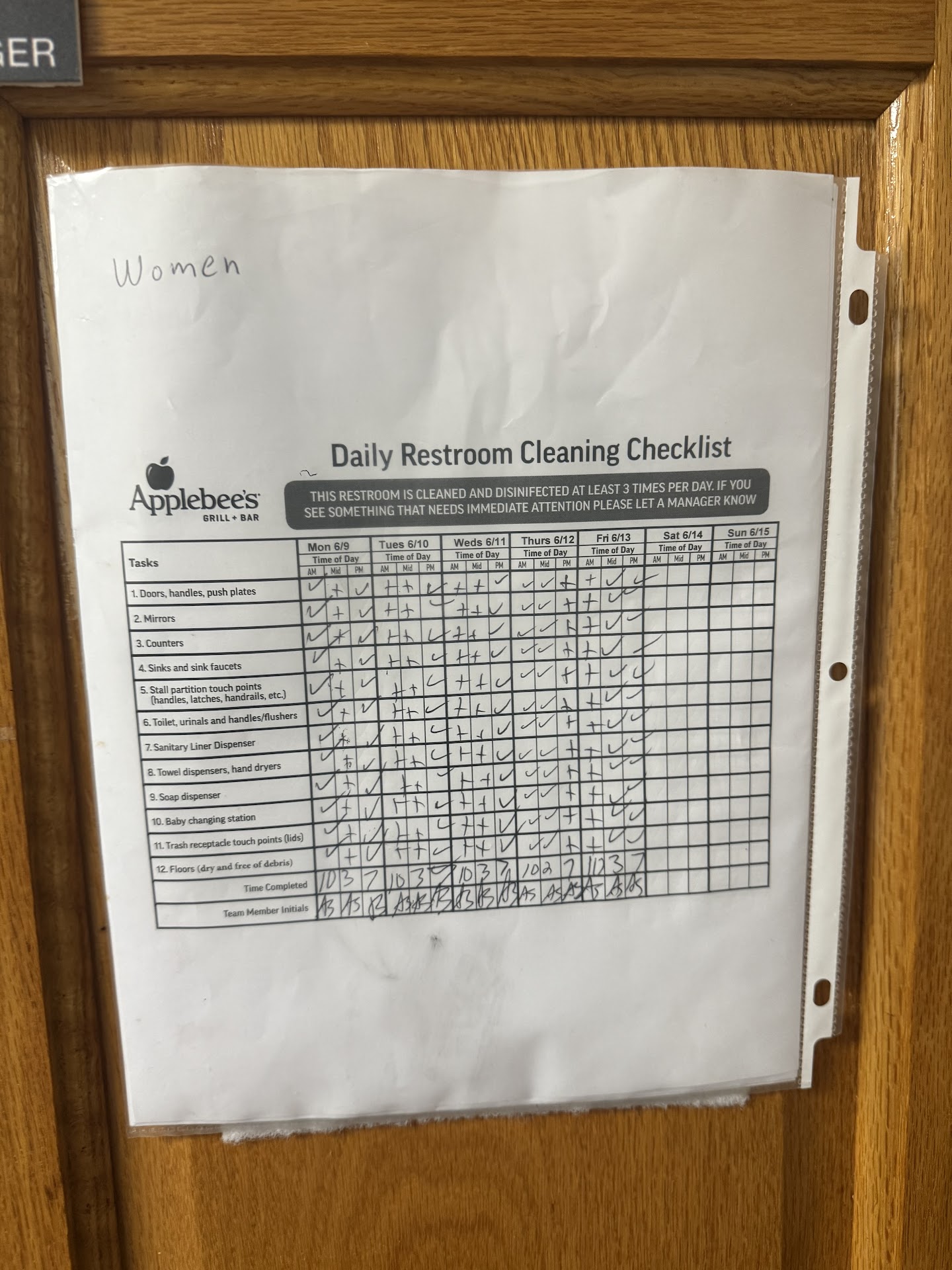 To make matters worse, the salad I ordered to-go was made incorrectly and missing half its ingredients. The bathroom check sheet was from last week, with no indication that it had been cleaned in the past two days. Disgusting. Other staff were lounging loudly at a nearby table—eating, vaping, and chatting like they were at home instead of at work.