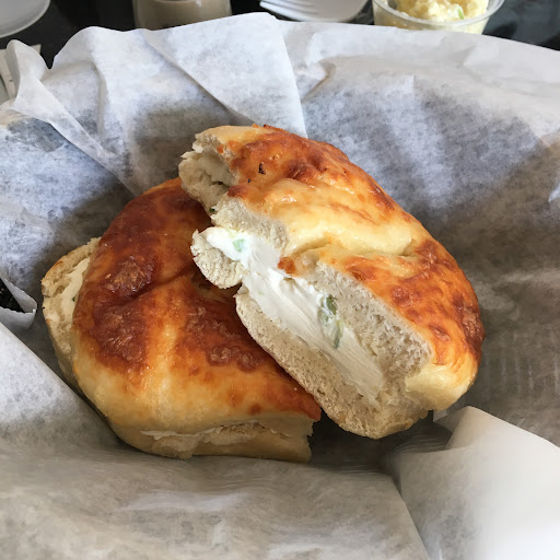They serve bagels, custom make your own sandwiches that are made with Boars Head meat, and they have an array of side salad options to go with it. There is a small seating area inside and a few tables out front.