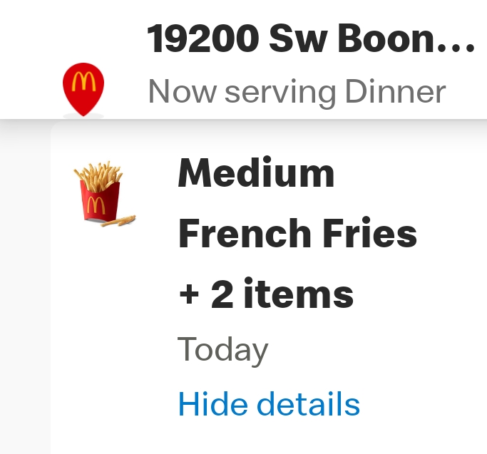 Read moreWorst customer service by supposedly manager by the name of “TODD” today. I work pretty close to this McDonald’s and have never had an issue here until today. I did a mobile order and went inside to pick up and go. These employees one specifically in a gray jacket, he looked maybe 15 but I’m sure much older to be a “Manager” he was incredibly rude and obviously couldn’t do the minimum of his job duties. There were two people as far as I Knew that had mobile orders. While he was joking around playing with his coworkers during a busy (lunch time) he flung a bag on the counter stating “mobile order” no number or no reference to the items in the bag - NOTHING. Then again flung another bag and said “mobile order”. I’ve done a few mobile orders and they’ve always stated the order #. After I asked him what’s the Mobile order to know which was possibly Mine. he stuck his hand in one and said “well did you get cookies” he was ridiculously unprofessional and as if it was asking for way to much then to do his job and state what order was for whom. He made a very easy process incredibly unpleasant and unnecessary. After I asked who the manager was which was supposedly him and he didn’t even have a name tag on. I asked for his name and after he thought about it while saying “uhhhhh, Todd” I knew he made it up.