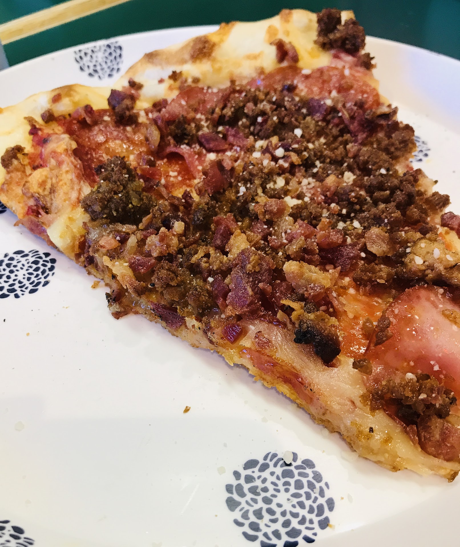 One major positive- most NY style pizzas get cold quickly- we waited a few after getting it & it was still super hot, even for a dine in experience-loved that!