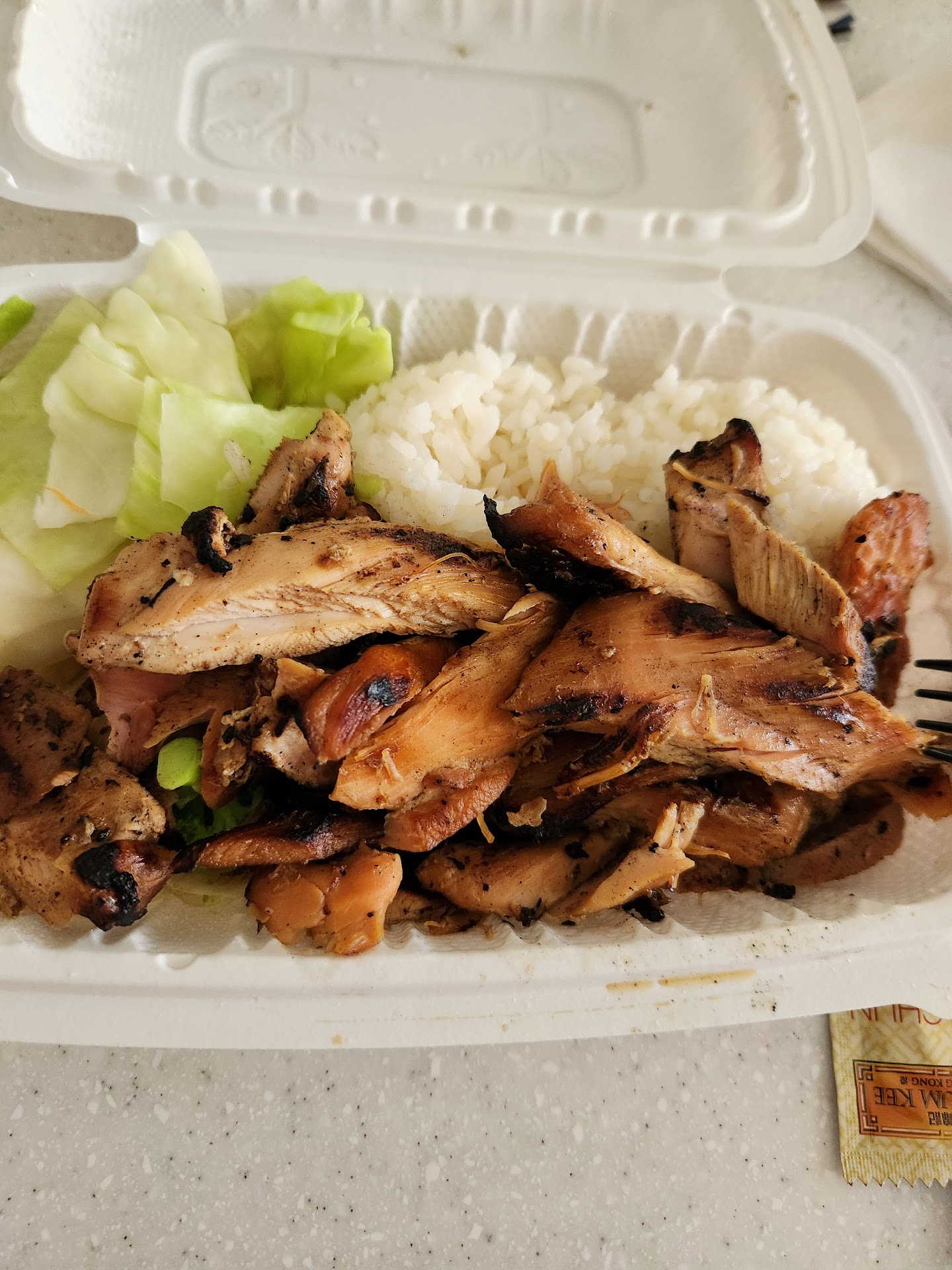 Read moreOk, look, let's just be really honest. You cannot go to this place without having at least one spam dish. Spam is the star of the show, whether you do spam and eggs, or spam musubi. Yes, I have absolutely had their chicken katsu, and teriyaki chicken, but I always come here for the spam. With a big old pile of white rice to soak up all the amazing sauces, and a scoop of mac salad, you truly cannot go wrong, especially for the price. This is one of my favorite stops for a meal with some of my favorite flavors when visiting family in the area. You can also take your meal and sit by the lake that is right next door, which makes for a very pleasant evening. The staff are somewhat indifferent, but kind and helpful, the music is definitely island- oriented, which is perfect, and you just get an amazing product over...