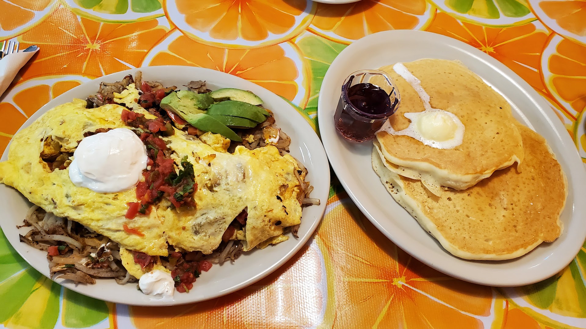 My boyfriend got a three-egg chili omelet. It was incredibly big. The next size up is six eggs. I don't know if they gave him a six-egg one or what, but it was WAAY too much for him to eat. He wasn't thrilled with the taste, but he also said it wasn't bad. Just too much food and kind of mediocre.