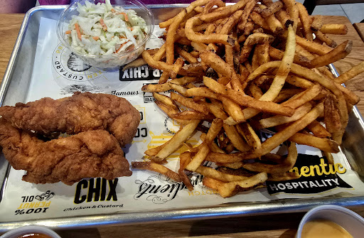 Read moreThe fried chicken sandwich is okay but salty (1870mg!!) & sat like a lump in my stomach causing bad indigestion. The sauce bar is a cool concept. We ordered one large sized fries to share for 2 & clearly that amount of fries would feed 4. The fries were half crispy & half soggy; the crispy ones were good. The vanilla custard is excellent 👌 not too sweet and silky smooth in texture. But the 1 scoop is really a 1 person serving size. I'd go back but only for the custard. Probably often - lol I don't expect them to be in business very long. Also - They only give you a tiny water cup as a joke I guess...feels chintzy or like they're not trusting customers to just get water. I want a large sized water, Chick-fil-A doesn't play...