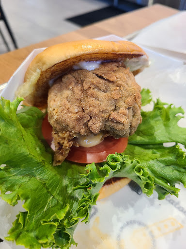 Read moreThe fried chicken sandwich is okay but salty (1870mg!!) & sat like a lump in my stomach causing bad indigestion. The sauce bar is a cool concept. We ordered one large sized fries to share for 2 & clearly that amount of fries would feed 4. The fries were half crispy & half soggy; the crispy ones were good. The vanilla custard is excellent 👌 not too sweet and silky smooth in texture. But the 1 scoop is really a 1 person serving size. I'd go back but only for the custard. Probably often - lol I don't expect them to be in business very long. Also - They only give you a tiny water cup as a joke I guess...feels chintzy or like they're not trusting customers to just get water. I want a large sized water, Chick-fil-A doesn't play...