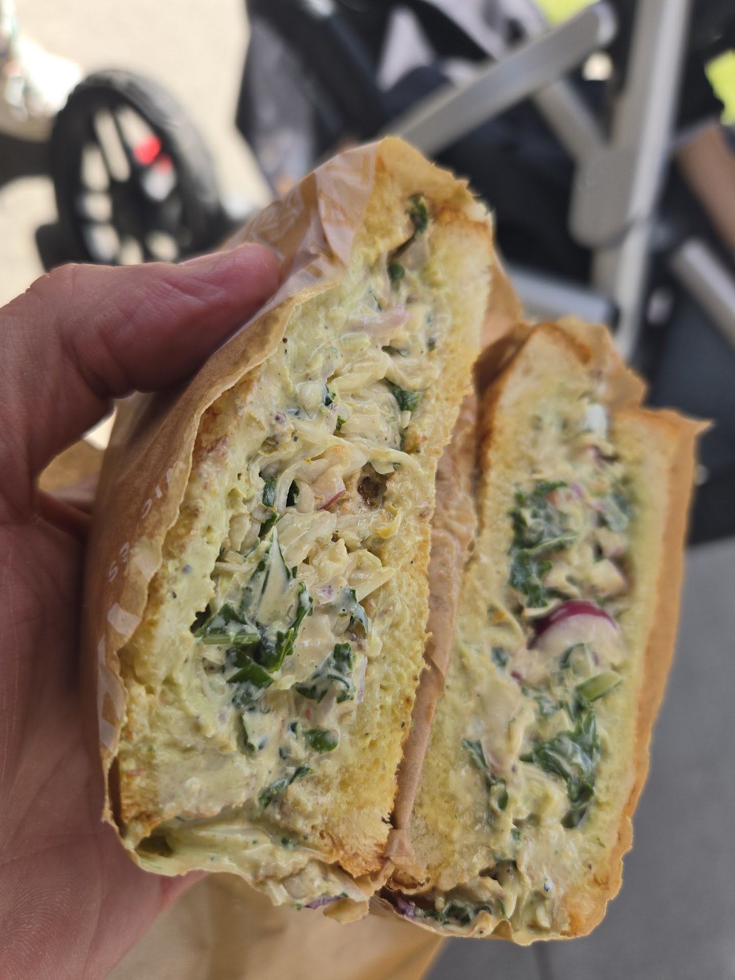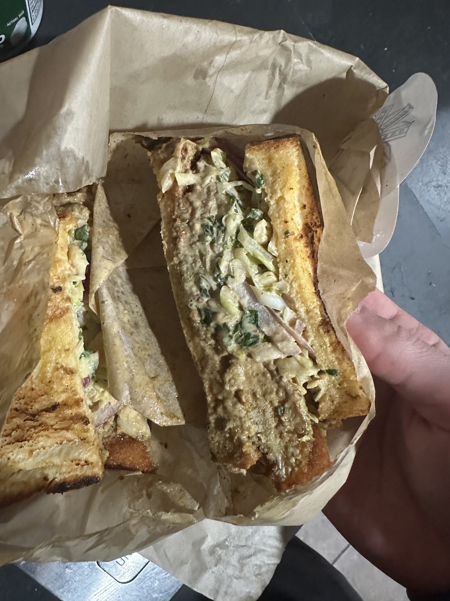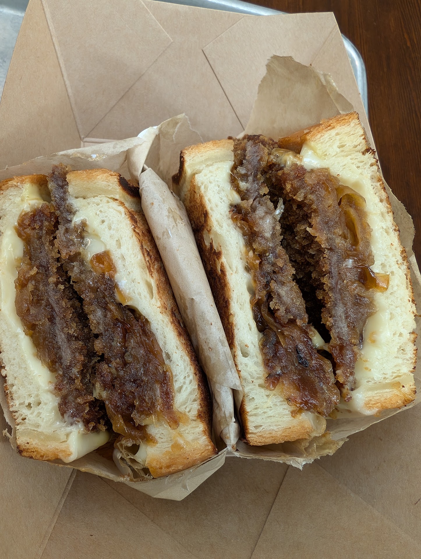 I just threw out an entire sandwich because the bread was saturated and the spicy sauce was oozing out the sandwich to such an extent it painted the outside and (of couse) the katsu was burnt.