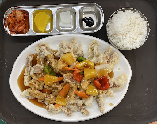 Read moreThe food is so good and more to be expected from a much more formal restaurant. Being an eatery inside a grocery store does not detract from the fabulous culinary options. The only negative is the lack of drink options. Pork Tangsuyuk, lightly fried pork strips with a drizzle of sauce is well complimented by the peppers, onions, and the side of kimchi and other condiments. The sauce is not your typical Chinese sweet and sour, but a Korean version that is darker and more savory. Quite delicious, but without the rice, can be a little too umami or salty. The Bulgogi, a stir-fried marinated beef with sweet peppers, onions, and carrots has excellent flavor with very tender beef and slight crisp to the vegetables. They have a really good variety of dishes, already planning to try more when we come back for more...