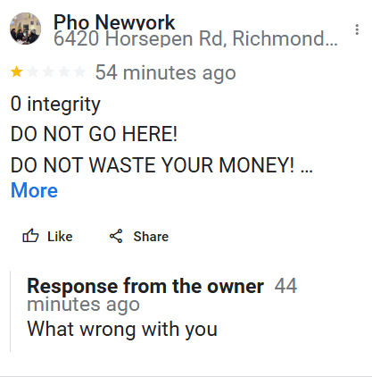 *see screenshot of "owner" response Proper Customer service training NEEDED