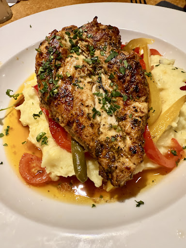 We chose the "Local Farm Chicken - All natural, hormone free chicken breast served with seasonal veggies, herb garlic, and Yukon gold mashed potatoes". The chicken was seasoned well, and was flavorful. It was served atop Yukon gold mashed potatoes and vegetables (sautéed red and yellow bell peppers and green beans).