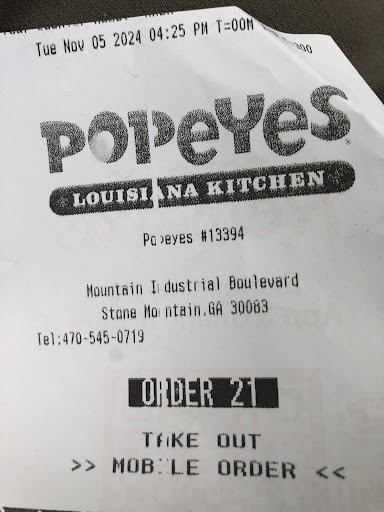 Read moreThis Popeyes location is ridiculous… Came around 8:30 pm and ordered a 8 piece meal. Before I received my order I asked the manger was it fresh and he told me yes. Got home and we could barely bite into the chicken. & I was missing my peppers and also they gave me all thighs and breast. Called and told the manager and he told me that they would redo my order. The next day I tried to get what I ordered and a very RUDE manger was there it was not the one I’m spoke to who in fact fixed my order the night before. But he gave me 4 pieces of chicken. So I told him that was not what I was told as long as I kept my receipts which I did. I called corporate and also wrote a complaint. Received a call a few days after by Marlen and explained the situation she told me she was sorry for the inconvenience that when I go back up there to tell them she sent me and she also told me she couldn’t replace my own order which was the pies I order but she could replace the meal. Well here am I today trying to get the meal only for the same RUDE manger to be there. He told her he took care of me. How did you because I ordered a 8 piece meal sir. You gave me 4 pieces of chicken and said basically if I wasn’t satisfied to call the number on the receipt. I spent to much money on old chicken that apparently was just sitting under the heating area getting dried out and burnt. & the fact that I have came up here twice...