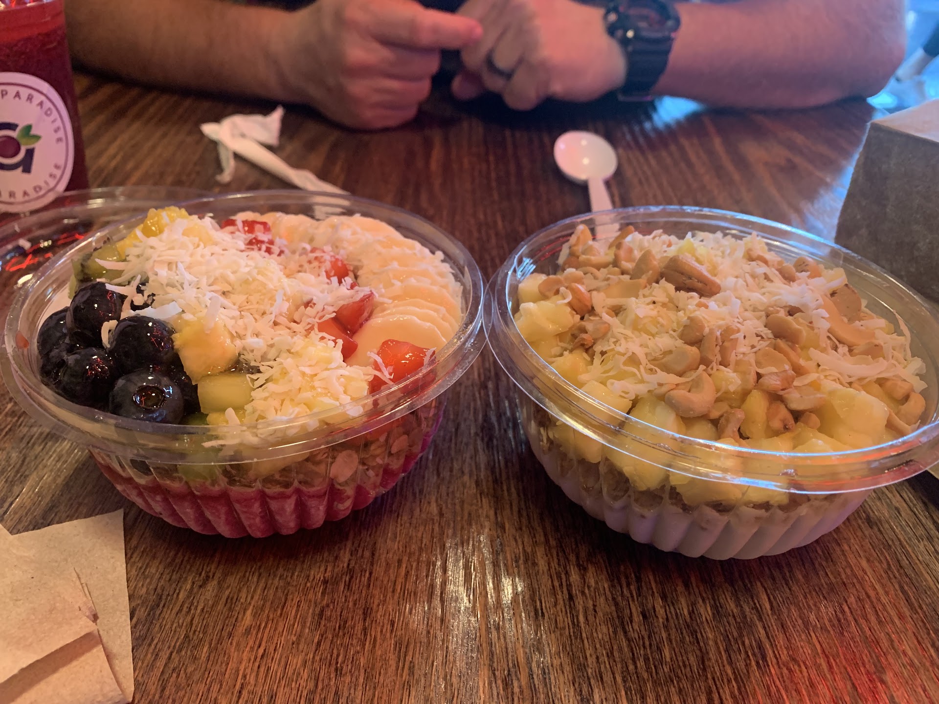 I ordered 2 açaí bowls. I got a “regular” size for my son and a “large” for myself. The large was $12.00 plus tax. As you can see in the picture (large is written on one of the lids) the large and regular are the exact same size. Same size bowl, same weight, everything. Not one difference. I would recommend ordering a regular if the sizes are the same and save your extra money.... The bowls are pretty-But, are quite bland compared to my favorite açaí bowl place. Our bowls came with coconut oil on them but my guess is they are using a refined coconut oil rather than unrefined due to the lack of coconut flavor. Unrefined coconut oil is the healthy oil that has a strong taste of coconut and lots of health benefits. This oil was rather pointless to put on there, in my opinion. The serving is also much much smaller for the same price, at my usual place. These bowls had hardly any “açaí sorbet” at all. The restaurant is cute and the menu seems to have quite a decent variety on it. The lady I ordered from gave me the feeling that I was annoying her by asking questions on some ideas on what to order. One of my least favorite things is feeling like a burden when I decide to support a...