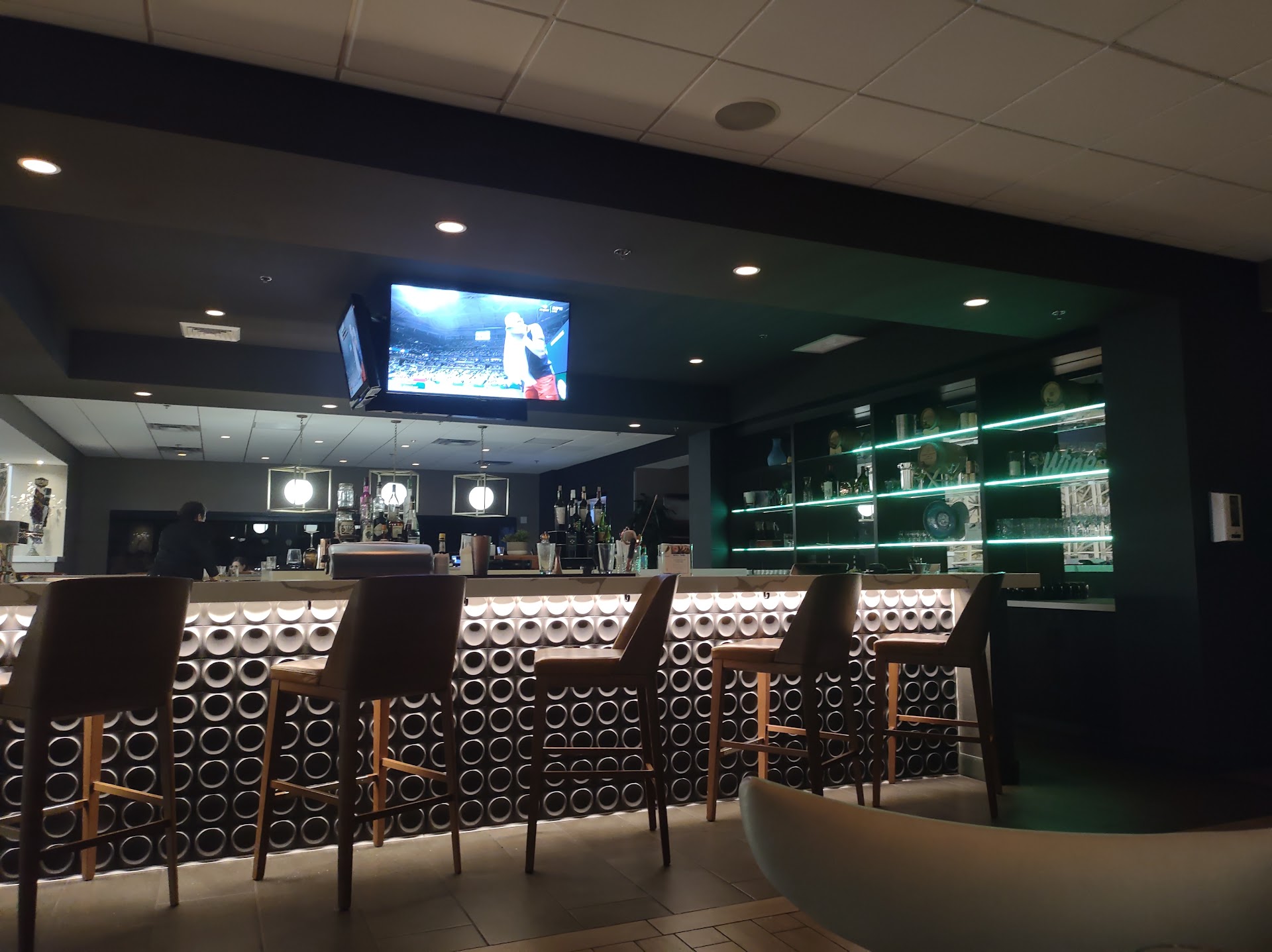 Read moreLocated inside of Hilton Tucson East. We were staying here and decided to try the food for dinner. Very nice environment. It was pretty quiet all in all until the drinkers showed up. Then one of the bartenders and some patrons started yelling to each other about sports. The other bartender had a scowl on her face the entire time. Our waitress was awful. Couldn't hardly get her to come by. She was always in the back of the restaurant or leaving. After dinner we even saw her outside. The food was pretty good. Mine was anyway. I ordered the pappardelle and short rib. The pasta noodles were very good. Not gummy, sticky, or overcooked. The cream sauce with the gorgonzola made a great combination! The meat was so tender. I did have to add a little salt, but it was very good. My husband ordered spaghetti with meatballs and a side salad. The champagne dressing was different, very light, but good. The spaghetti and meatballs were absolute trash! The meatballs were totally mushy and gross, as if they had been boiling and steaming then frozen and thawed out several times. The spaghetti and sauce definitely was not quality either. The noodles were very overcooked and mushy. I would not recommend ordering that. I would come back to try some of the other things on their menu. Hopefully the service would be better. Also expect to pay about $20 or more per person, not including...