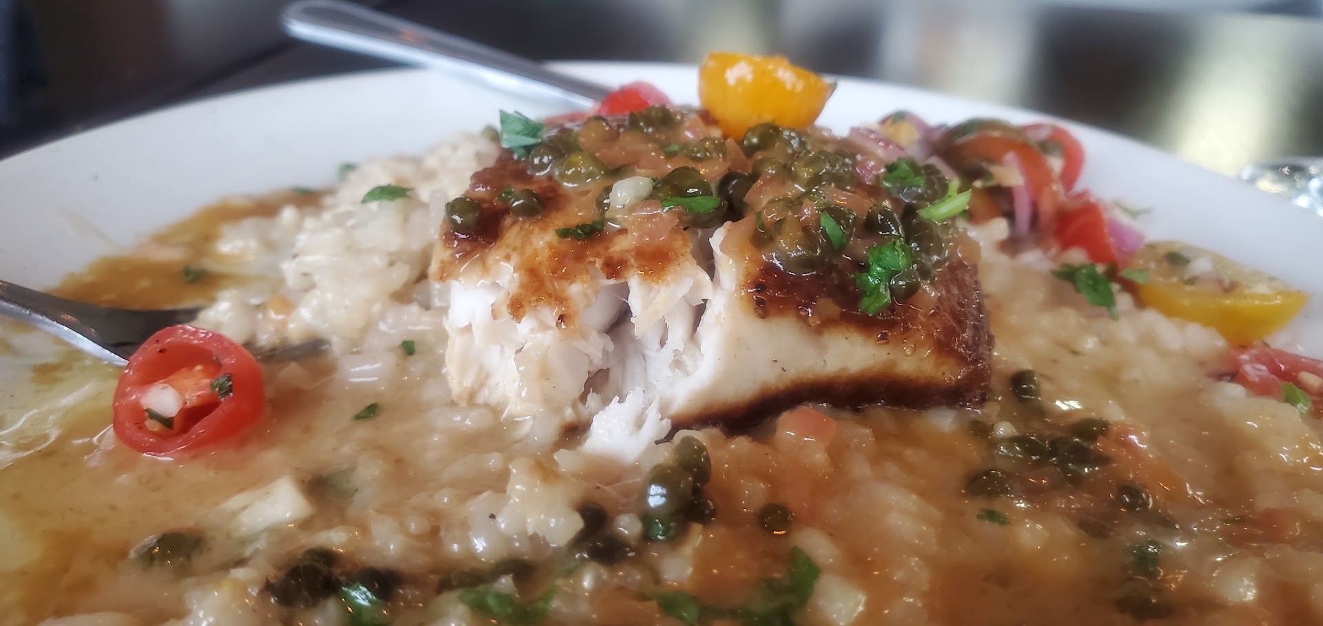 The best menu item of our visit, by far, was the Mahi Mahi Piccata. The fish was cooked perfectly, the risotto was very flavorful, and the piccata sauce was perfect. It is a delectable dish that I highly recommend to anyone who enjoys fish and piccata.