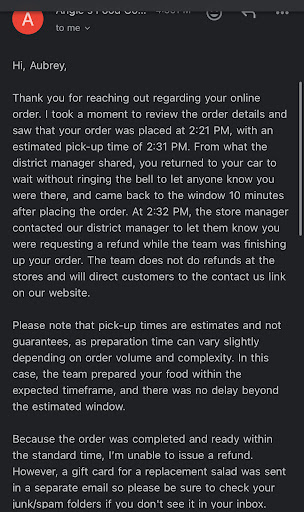 The chicken has a really good taste to it however, like I said, I got extra chicken and I would like to see it versus paying for it. I stopped by Chick-fil-A right next to this location and got some grilled chicken to add to my salad. Which means I spent extra money on top of extra money. Businesses have to do better, no matter what level they’re at.