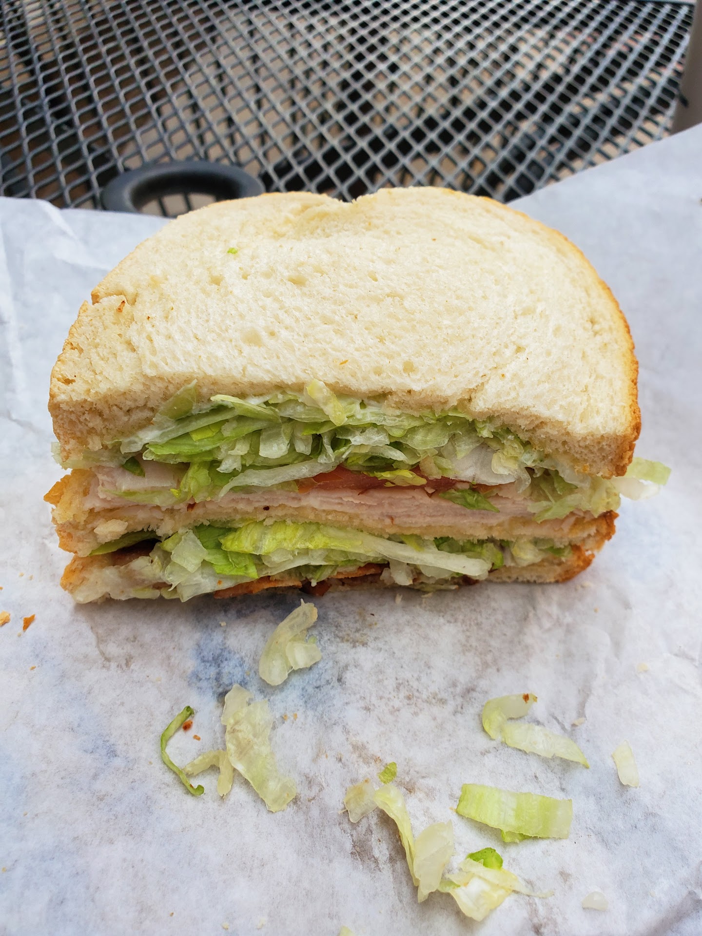 When I got a chance to finally sit and eat my full sandwich, I was sorely disappointed. What I received was a sandwich sloppily made with the toothpick inside the sandwich, not poked through the top of the bread. On top of that, I was given the end piece of bread, which was placed upside down to make the sandwich… like I said, sloppy. I’ve included photos of the original sandwich and then the sloppily made replacement. You can see that in the replacement sandwich there’s no toothpick hole going through the top, and that’s because someone put it in the meat.