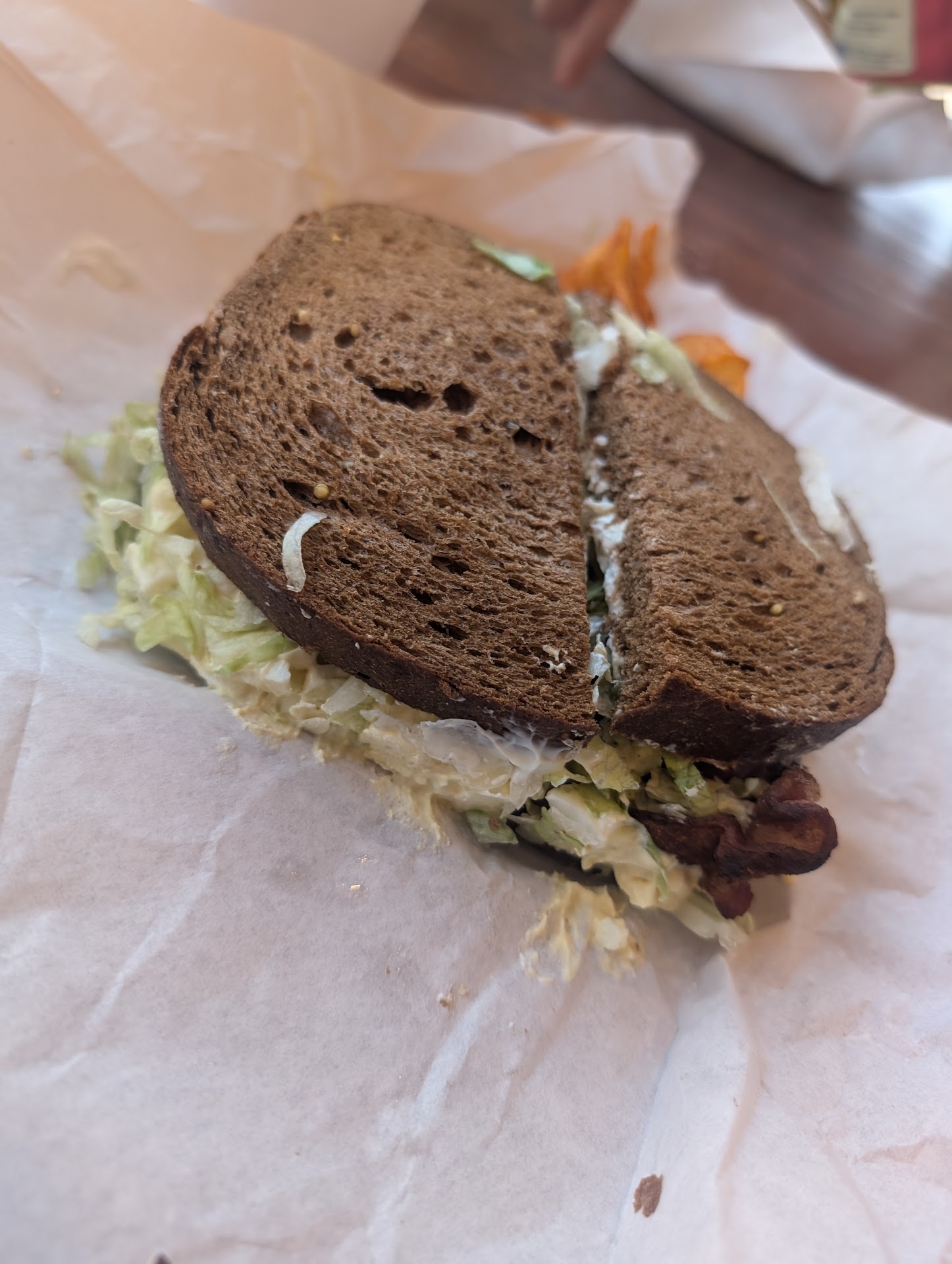 Read moreUpdate April 2024: changed rating from 5 to 2. Placed a $350+ order for 22 sandwiches 2 days in advance on the electronic ordering system for a lunch event to be picked up at 11am. I gave them 10 minutes leeway and arrived at 1110am. They hadn't even started most of the sandwiches. Didn't put extra staff on the order until 10 minutes later when I pushed. The place was empty btw. At 11:30 they take the sandwiches to the car. Never again will I come to this Baggins and frankly I question the chains ability to handle advance large orders. This is the 2nd Baggins store to bumble a large order and be half an hour late. This is inexcusable. And.the table was sticky where we waited near the cash register. A disappointing experience. Original review 2022:Generous sandwiches. Lots of toppings. They give you 2 cookies when you split a sandwich. Big dine in area with lots of tables. A few outside on patio. Great service relatively fast. My...