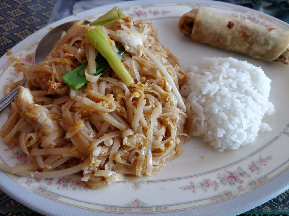 In my forty five years on this earth i've never left a bad food review. I've also never gone to a thai restaurant that I didn't like, and not given it a second chance a few months later... I mean, nobody's perfect, right?. This was absolute dog food. My children and spouse agree.This is without a doubt the worst thai we've had ever. And we eat quite a bit of thai, And have traveled from coast to coast.If we havent eaten at 75 thai restaurants in the last ten years I'd be amazed. This is by far the worst food of anything i've ever put in my mouth. The pad Thai tasted like fettuccine with moldy parmesan on it.I swear to god. I don't know how they messed up drunken noodles.But it tastes like chunks of burnt oak. The beanthread glass noodles were so spicy with cheap curry powder that my favorite dish soon turned into a sad pile of slimey soggy noodles in the trash can. Usually I have to Bury it under something.So the dog dont eat it... but one sniff and she ran away And instantly munched on a cat turd out of the litter box just to get the taste away from her face.. The Thai tea had no sweetness to it at all.It tasted like burnt coffee.I swear to God.This was a disgrace to anything called thai or food. 5 stars for service, though the gentleman at the counter was great and the old lady in the kitchen came out with the biggest smile very friendly.Even though my food took a while(bout an hour) they were somewhay accommodating, the atmosphere was kind of like a dirty rec center but that's okay.All I care about is the food quality and this was...