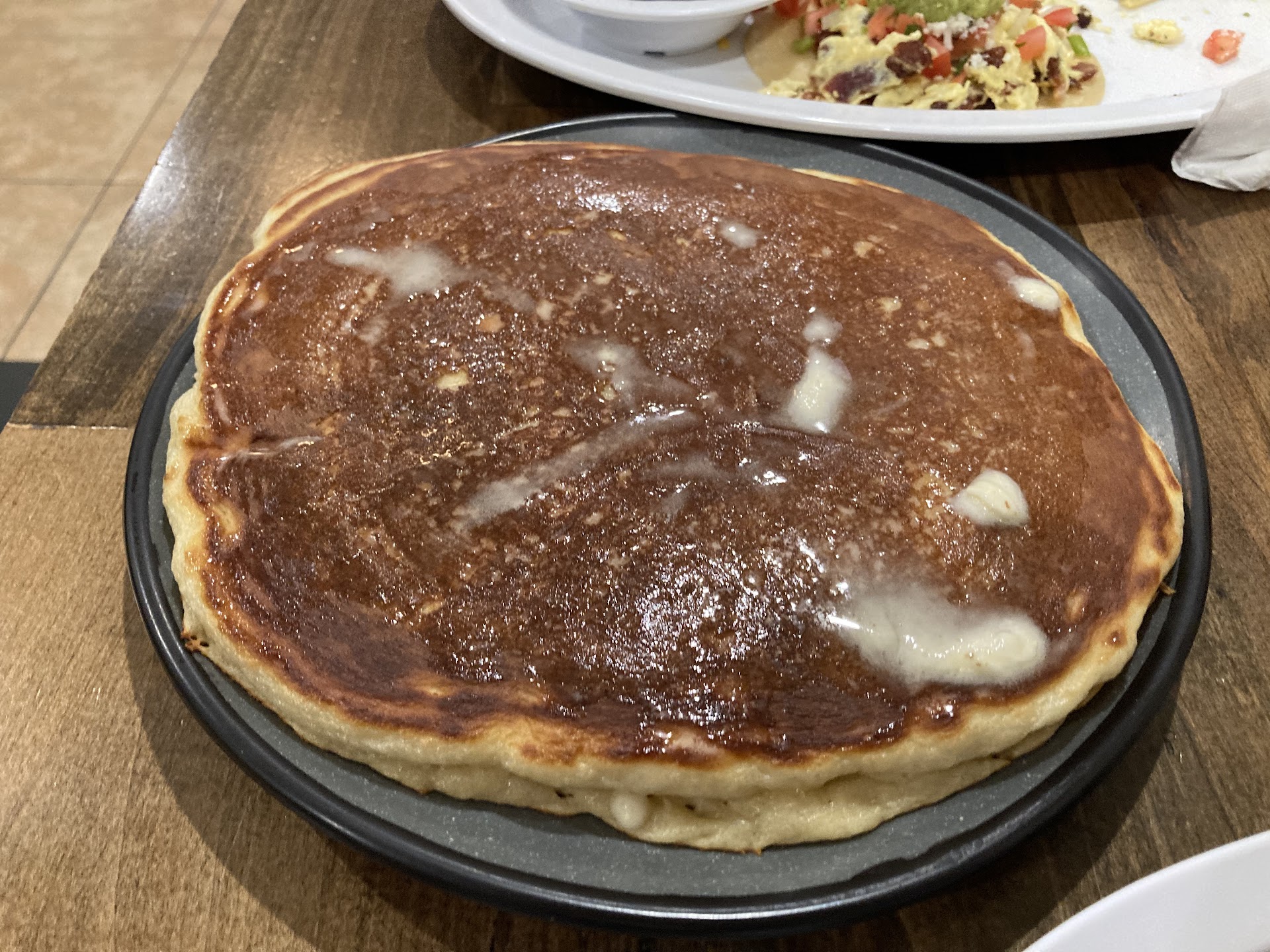 I had the combination eggs and just straight buttermilk pancake (they’ve got a LOT of pancake variations here, along with the overall great selection here, with a bit of an emphasis on great looking Benedicts (people seem to love the Coyote Benedict), which was both huge and absolutely delicious. Not easy to get excited about a regular buttermilk pancake - except here at Baja Cafe, where it is fantastic! A bit on the thick side, but not too heavy, it’s really fluffy and you can taste the buttermilk. And the butter is warm and the syrup is real maple and warm and gooey so they both go right on that big pancake with ease. Let’s not forget how delicious the hash browns are, too. It’s easy to go wrong there, I’ve had really greasy or salty hash browns but here at Baja Cafe they are just perfect. Use their awesome homemade hot sauce on the hash browns, it’s a real treat. I even liked the sausage patties a lot.