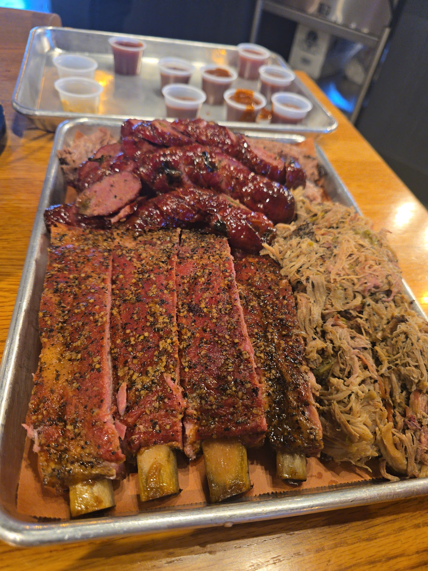 So, all-in-all, we were very disappointed with this new BBQ place in town but did find some great things to note during our visit. The restaurant has plenty of seating inside and out, and was decorated with a nice theme and ambiance The employees are very friendly and helpful The brisket is very good, though it can be fatty The restaurant and bathrooms were very clean There is plenty of parking and handicap access to the restaurant