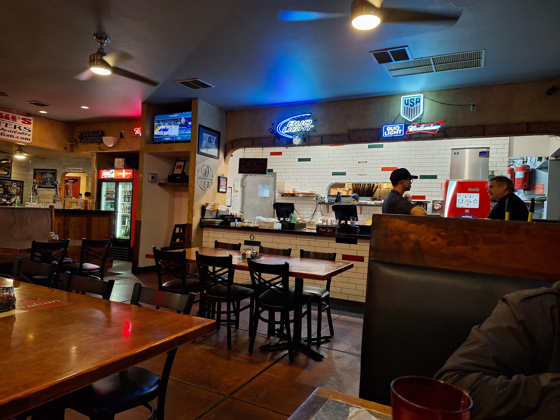 The staff...super pleasant, very helpful, and just as welcoming as the dining room atmosphere. Our server, on Friday, gave us recommendations, and we tried one of them. It was the spinach lasagna and it was SO GOOD. The garlic bread that came with it was crispy on the outside, tender on the inside with just the perfect amount of butter and garlic to make it "melt in your mouth tasty". We also ordered a hand tossed veggie pizza (a Lenten Friday treat) and enjoyed that as well.