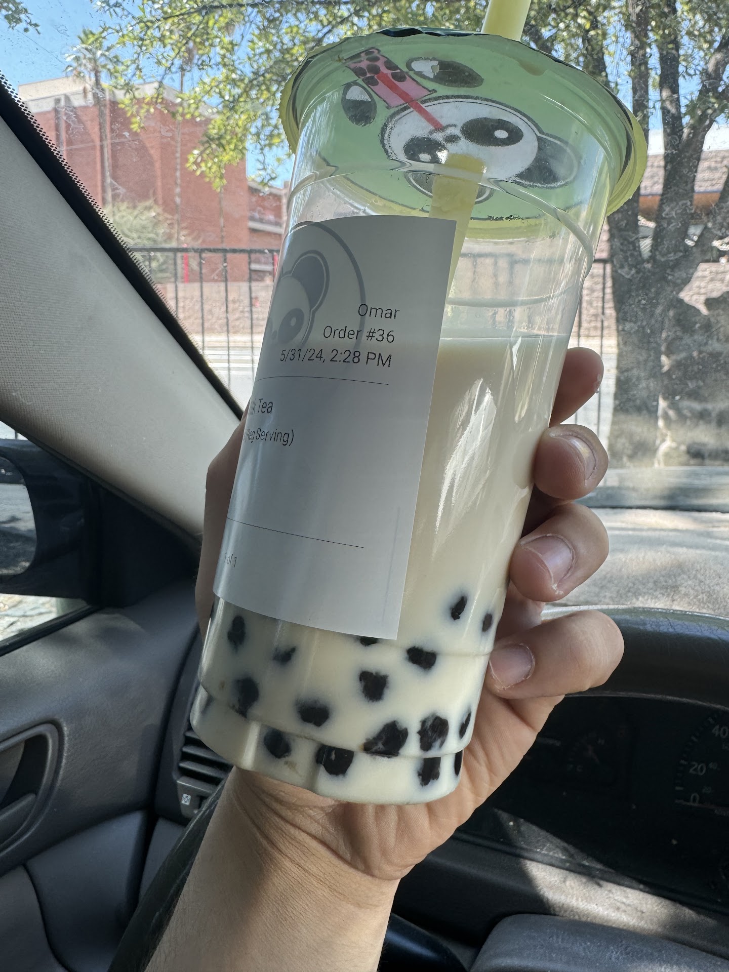 I usually get a regular fruit tea (black) (I’ve done peach and strawberry before) with regular boba along with peach and/or strawberry popping boba. I highly recommend either of those drinks on a hot day.