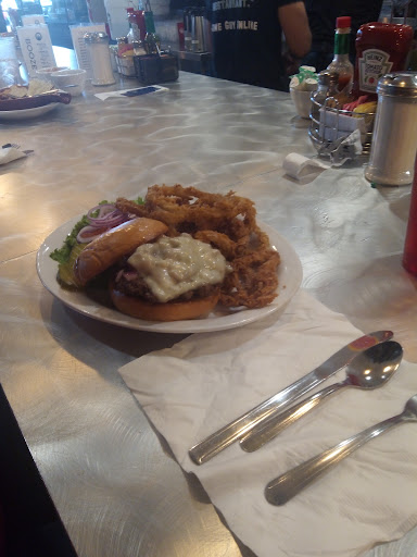 Read moreThis our first visit to Bisbee Breakfast Club on Wilmot in front of St. Joseph's hospital. (If you don't mind, BBC from here on.) We came midmorning, hoping to avoid the meal rushes. Not going to happen. To get immediate seating, we took to the counter. Unlike many restaurants, this counter is textured stainless steel, very attractive and super easy to clean. YES. This place is pretty much non-stop bustle. They have a flock of wait staff, ours was perky and pretty blonde Lacy, and they are constantly in motion. That makes the room a bit loud, but not so much that conversation is impossible. Listening to the chatter from the cook line was entertaining. Diane had the Gooey Louie, (7oz. burger with cheese, onion rings and BBQ sauce, which she excluded.) I had the Sonoran (same patty with mild chilies, cheese and guacamole, the latter I passed on.) We both got the side of onion rings. Now, I love onion rings and constantly search for new ones. BBC takes fresh onion, thin cuts and batters them and fries them just right. These are the BEST !!!!, no doubts or reservations. I could eat these little slices of fried heaven all day. Just the right mix of crispy, oniony flavor. I could go on but you just have to get some for yourself. I give them my highest accolade... YUMMMM I finished my lunch with a slice of coconut cream pie. Not sure if it home made but it was very good too. BBC is a tad pricey, our burgers were over $10 each, but they were very well made and the rabbit food was fresh. BBC has a great breakfast menu that we are committed to trying soon. Not sure I can justify having onion rings with French Toast, but I may do it anyway. Come by BBC, and grab a chair, just know you might have to wait for it. But its well...