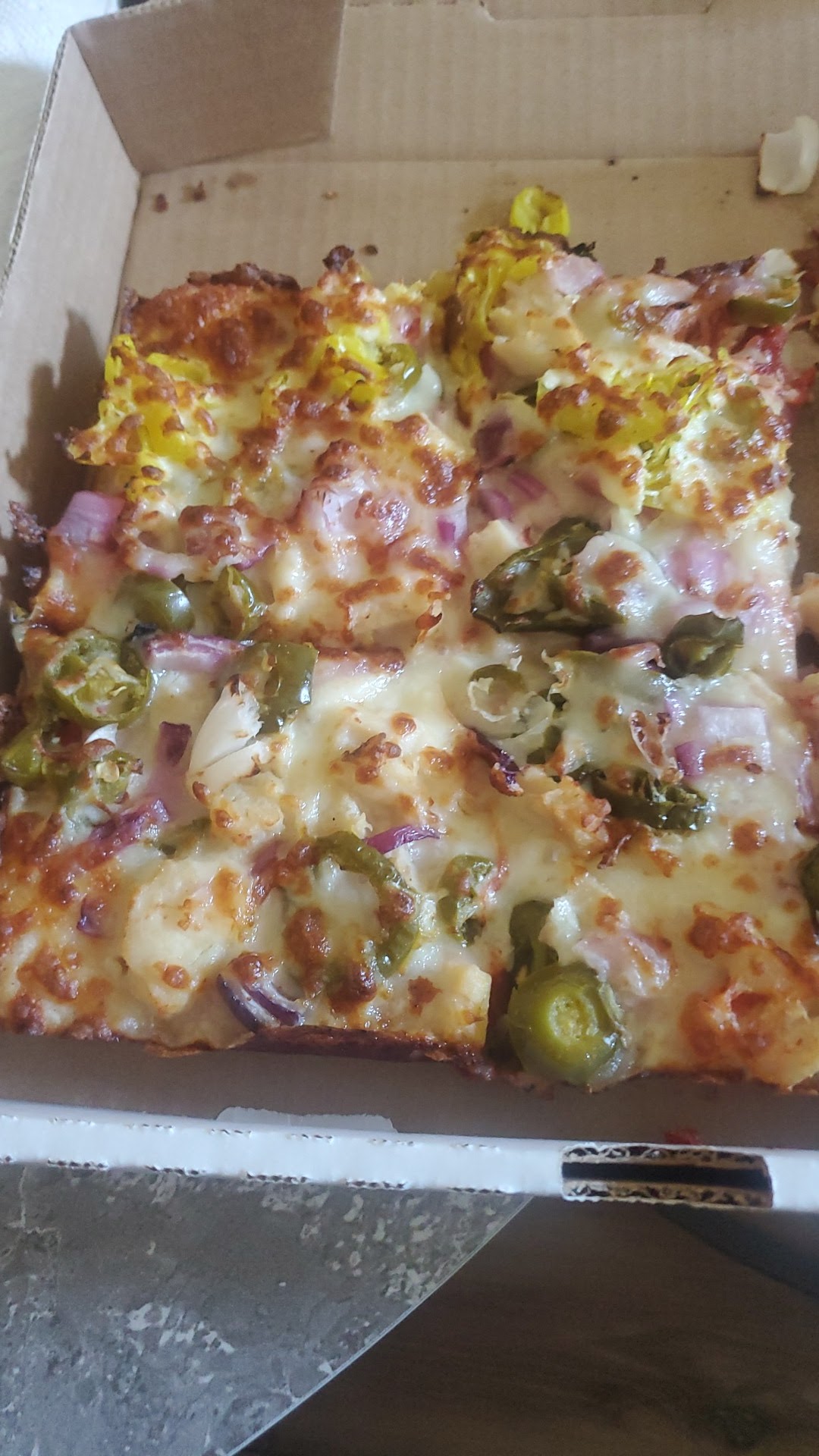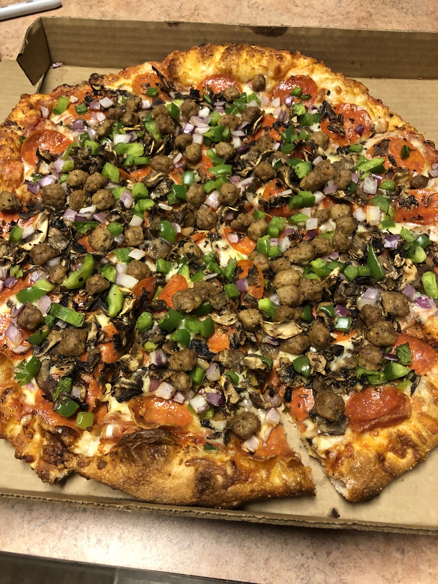 Our last order was for a single Large Jackpot pizza, A kind of everything pizza with green and black olives. Due to an allergy we requested NO Green Peppers, and to add feta cheese. The $30 pizza (that was $40 after tax, delivery charges and tip) was 1) covered in green peppers 2) no feta to be found & 3) without green or black olives. Are you kidding me??