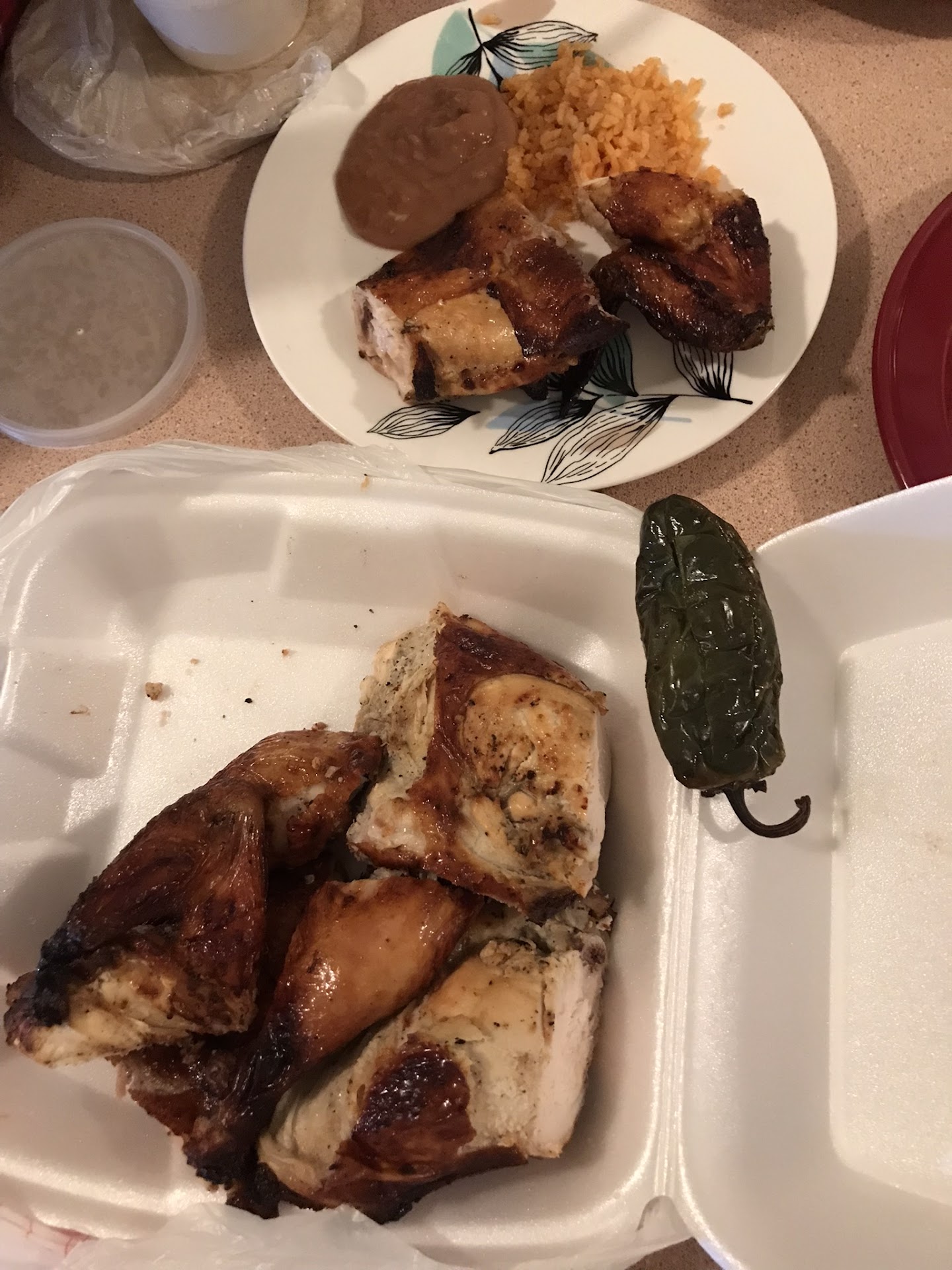 Ā Ā Ā Read moreSome of my meal was good, and some of it was kinda boring due to lack of seasoning⦠even for fast food, I thought a place dedicated to chicken would make more of an effort to season it.. and corn on cob is entirely unseasoned- it really doesnāt take much to include a sprinkle of seasoning, side of mexi crema, and a lime to make it right, but they donāt. Guacamole, beans and rice were pretty good though, but disappointing they donāt give you chips when you order guacamole š¤¦āāļøš¤·š¼āāļø and salsa⦠no chips for salsa either. Salsa was pretty good, had a small kick to it but kinda bland in flavor. 3 piece dark meat, beans, rice, corn, guacamole, salsa, really wish it came with chips or at least more than just 3 tiny corn tortillas for all that food. I really want them to be better. Theyāre close, and these simple fixes would make all the difference. Still prefer Del Taco for Mex fast food over this place cuz they do put a bit more...