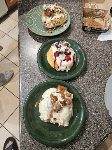 Read moreThese are delicious! The cream cheese frosting and Mashmallow frosting were fantastic and abundant. The service was very good, educting us when we looked confused at all the options. I rated this 4.5 because of the price being so high for an average size. Also, if you plan to dig in right there, bring your own silverware, as the cheap plastic fork and knife just bend. We ended up with sticky fingers (which isn't all bad). It would have been a higher selling point if they had offered samples of frostings. Wouldn't you like to try "cake batter" frosting? We wanted to eat ours right there as they come warm and who can resist! Two cinnamon rolls with frosting and two toppings...