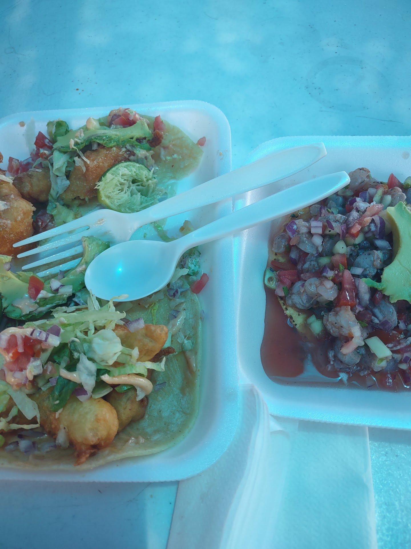 I am not lying when I say this is some of the best food I have ever eaten, period. I had a shrimp taco, a fish taco, and a shrimp ceviche tostada with a coke it was $13 cash. The shrimp and fish were fried in a beautiful light almost sweet batter, served on perfectly chewy corn tortillas with a delicious pico de gallo and a slice of avocado. Squeeze of lime and absolute perfection. Huge portions of crazy fresh shrimp and a light white fish definitely NOT tilapia! The shrimp ceviche was so refreshing, with perfectly diced cucumber, tomato, oregano and cilantro. Avocado slice gave it a creamy-ness. I was absolutely blown away. Service was stellar. You can call and order ahead.15 out of 10. Definitely coming...