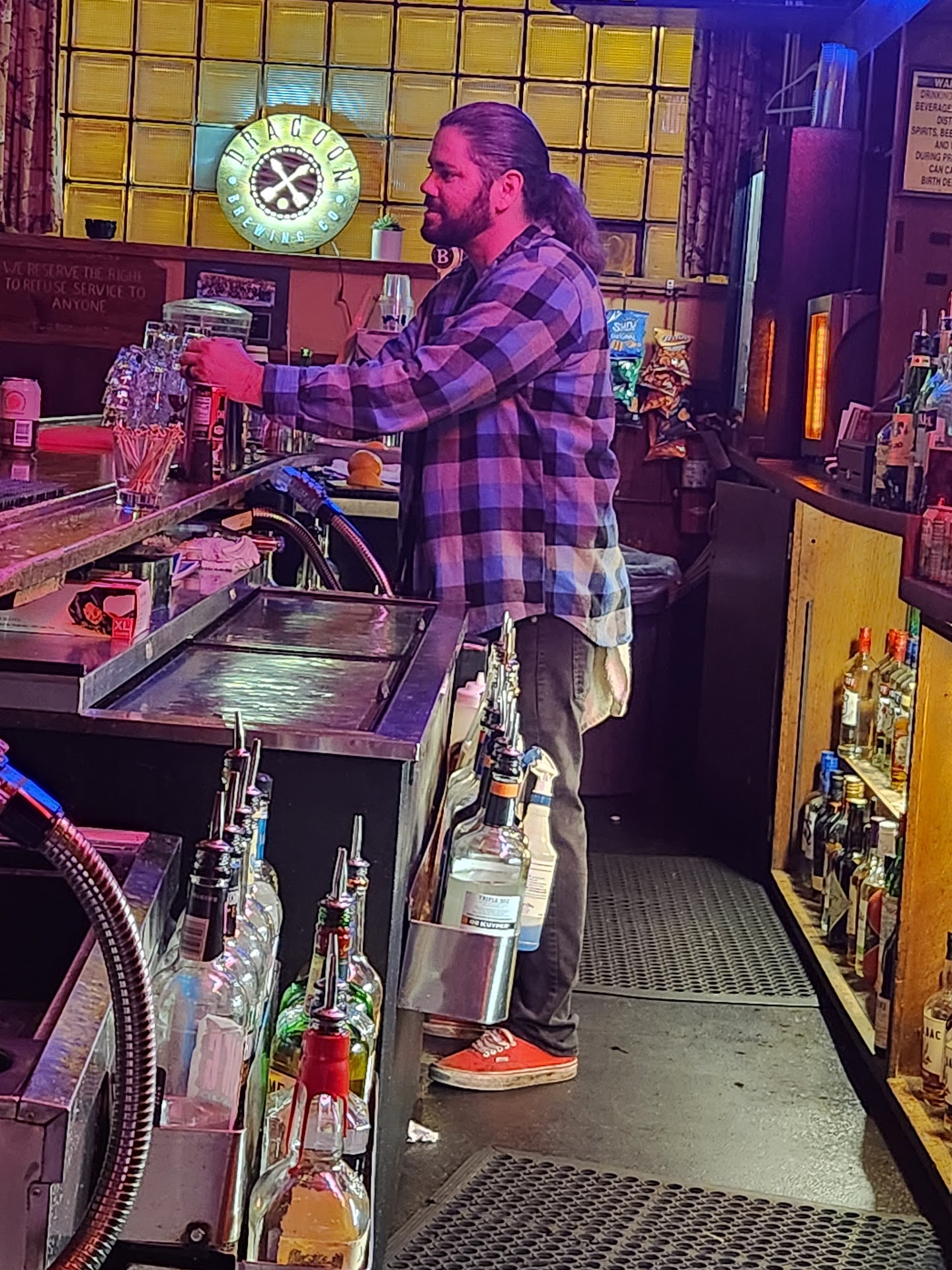 The place is actually pretty dam cool. Drinks are great, and the atmosphere is chill. Music is on the spot. However, having been in the entertainment industry for decades, I must give the bartender an epic fail. We sat down and ordered our drinks, and they were on the spot. Three gentlemen came in, and we immediately noticed they were from our of town. We struck a conversation, and it was all laughs and good conversation from the start. They bought my girl and my I 2 rounds of drinks, and the bartender still charged our tab instead of the New Yorkers. The New Yorkers called them out on the discrepancy and told him he needed to fix it. They were matter of fact and not rude. They had that typical New York mannerism. It's in their tone. However, if you have any people skills, you'd understand they weren't being rude, aggressive, or offensive. Instead, the male bartender with the pony tail took great offense, cut them off, and refused to serve them any further. Despite the fact that they had just arrived and had just begun their evening. I didn't know these guys, but as a law enforcement officer, I am able to read people. These guys were not drunk or aggressive, yet the bartender got in his feels and asked them to leave and refused to serve them. I tried talking to the manager on this matter, but she backed his play and stated that the bartender didn't feel safe. Wow!!! Really!?!?!? Didn't feel safe!?!?!?! Pathetic. These guys were professional contractors just hanging out and happened to buy us a couple of rounds of drinks. It's sad that they were cut off and refused service. As a former bartender, you sir...