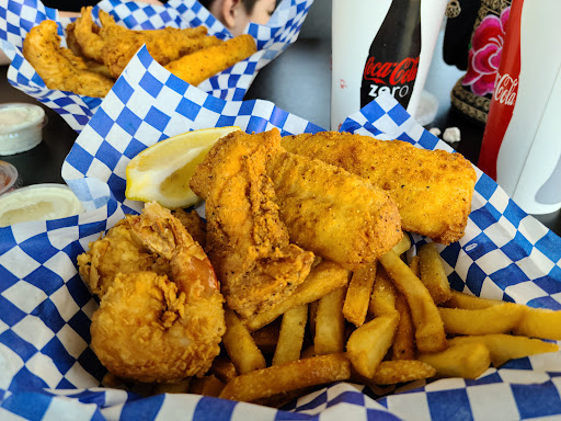 Read moreDecided to give this place a try based on the good reviews. Sad to say we were disappointed. I was pleased with the customer service aspect. The food was mediocre at best. We got the appetizer sampler that came with fried corn, fried mac n cheese, fried zucchini, fried pickle, jalapeño poppers, onion rings, and hush puppies. As well as the 2 pc catfish combo and 2 cod 4 shrimp combo. The drinks out of the machine were not cold. They handed us a cup with some ice in it because apparently the ice didn't work in the machine. Idk. I expected to wait for the food since its cooked fresh. It didn't take as long as I thought, so I was pleased about that. We got our food to-go, so we got our bags and went home. Our order was correct. The catfish, which I was really looking forward to based on the reviews, was overcooked and rather flavorless. The cod was decent, but nothing to rave about. The appetizer sampler was nothing special, typical frozen bar food appetizers deep fried. The fries needed to be cooked slightly longer as they were kinda soggy, and the shrimp didn't have much flavor. Overall, I don't think I'll return, I wasn't impressed. The fried fish on the Golden Coral buffet...