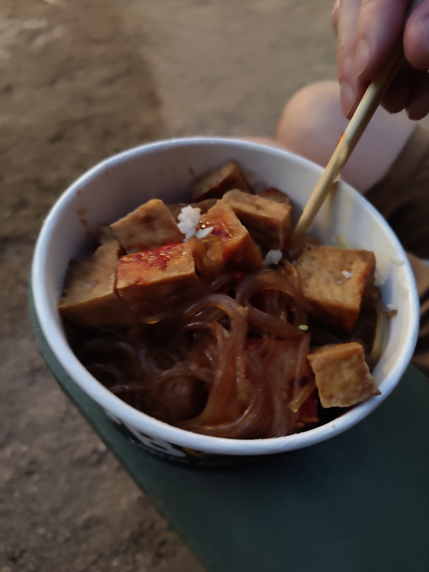 Service - Here is where things go south really quick. My partner and I walked in, we were greeted by two young adults that asked us if it was our first time coming into the store. We answered, yes, that it was. In a very monotone voice, and stoic faces, they said "yay we have first timers". The young man looked like he was sick of working there, his name tag read José. He took our order. We were told that because we were first-timers we would each get a free mandoo. Cool! My boyfriend orders the tofu bowl without the lime sauce and the mayo to keep it vegan. They asked him if he wanted the side of the kimchi that came with it but that it contained fish sauce in it. Boyfriend said no at first but I said yes because I'm not vegan I'll try it. Then I proceeded to order the rock bowl with everything that came with it. We get our order to go. We are handed our order and I tell my boyfriend that the kimchi was not in the bag. He goes and asks for the kimchi. I knew I should've checked my order before leaving, I trusted the people behind the counter. We got to our destination and I opened my bowl, no mandoo, no cabbage, no noodles, only chicken and white rice. Fortunately the vegan bowl was correct, except no mandoo. Disappointing first impression. Also, José kept picking his nose which was not cute when you're working with food. I wish I got the name of the young lady working with José because she was kinda trying harder than he was. Btw, I still left them a tip 🙄 because minimum wage sucks.