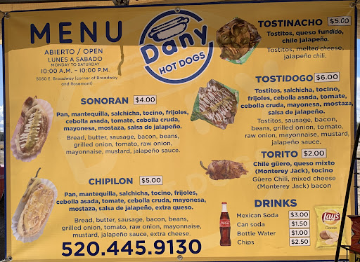 Read moreIf you’re craving an authentic Sonoran hot dog in Tucson, Dany Hot Dogs is the spot! 🌭 We tried both the classic Sonoran and the Chipilón hot dog—and they were absolutely delicious. The fresh bun, perfectly grilled hot dog, creamy beans, and toppings like pico, jalapeños, and that drizzle of mayo and mustard came together perfectly.