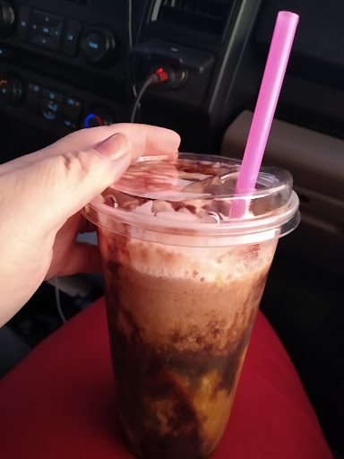 The car in front of us ordered at least 17 drinks (we were counting) Many of which they ordered when they got up to the window. This is my only true beef -- we were held captive, along with two cars behind us in the drive through. We literally had our drinks for 5 minutes and were drinking them (along with the 2 cars behind us) before we could get out of the drive through. Okay, I guess it was cool that the guy ran our drinks out to us so we could enjoy them at their particular temperatures. The gal at the window should have told the car to move up and park, but we sat and waited -- fully paid, drinking our drinks while the people in front of us continued to order...