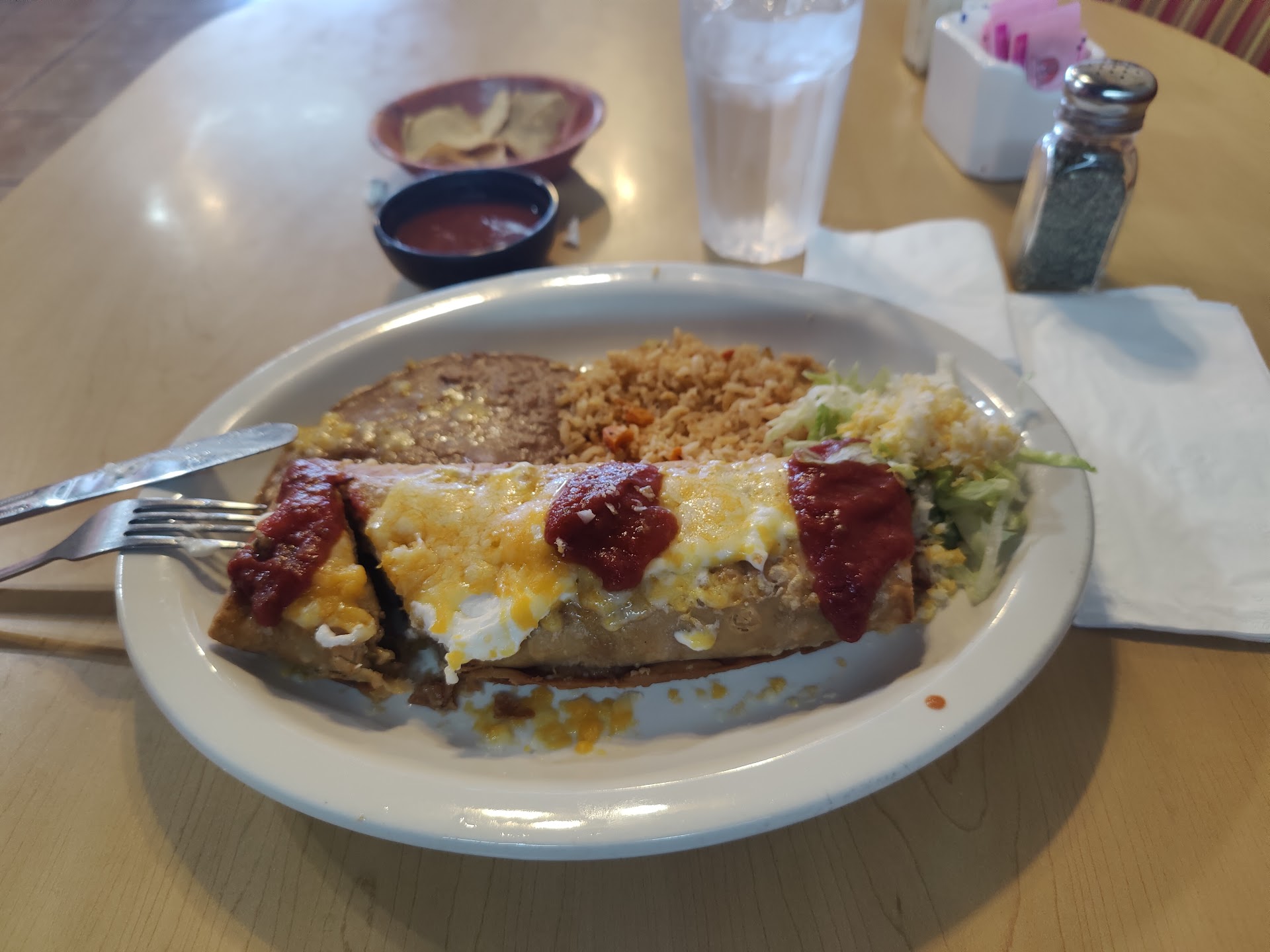 Read moreMy plate was okay I ordered the number one the beans and rice were very good the cheese enchilada was filled with cheese and sauce was good the tamale I could have done without it was dry and tasteless it was a green corn. My son's was a combination plate with the taquitos of carne asada and he said it was totally delicious it comes with three tacos of carne asada beans and rice and he ate the whole thing. My son said he would go there again. And by the way very clean 6 ft spacing and the table that could had plexiglass partitions on them which was very very nice and once again...