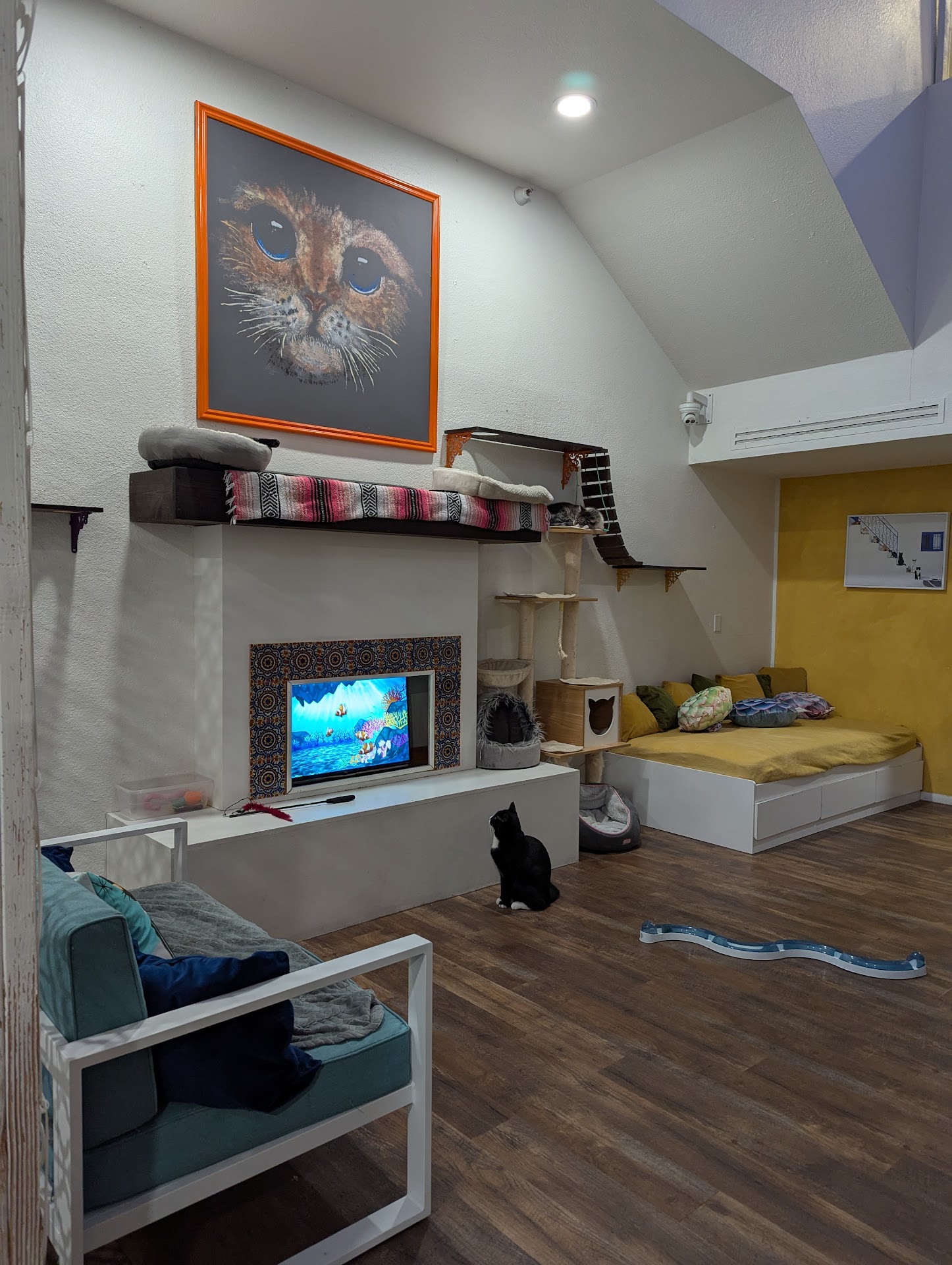 Read morePlease better clean the litter boxes and couch sheets. The overwhelming smell of ammonia and feces was a lot that I left early from a massive headache due to the smell. I felt gross sitting on anything because it's all sprayed on by the cats. The litter boxes were FULL. I also understand wanting to adopt out cats, but they need to better assess which cats they bring into the cafe for people to interact with. Most of the cats are acting feral with only a handful (four) who are actually social enough to be in this kind of environment. I have been to countless cat cafes all over the world and have never been scratched from any cat with ill intent, especially not unprovoked by a cat in a cafe. I've actually never been scratched this bad by a cat ever, and I've been around cats my entire life and worked professionally with them for many years. It was a feral/unsocialized cat sleeping near me while I was drinking tea while I was watching another unsocialized cat play on its own. The one that scratched woke up from a random sound, saw me, hissed and scratched my hand that was resting while holding my tea and ran away. Many other cats were extremely overstimulated and aggressive, scratching and hissing at other people. The cats' coats and physical demeanors are also telling. Almost all of them have unclean greasy coats and their tails are down, running away and hiding. Great concept here with the layout but it would be better and safer to properly assess the cats at the shelter before bringing them here for adoption. And don't bother buying the treats. Only one fat cat wanted the treats, none of the others showed any interest because they're too...