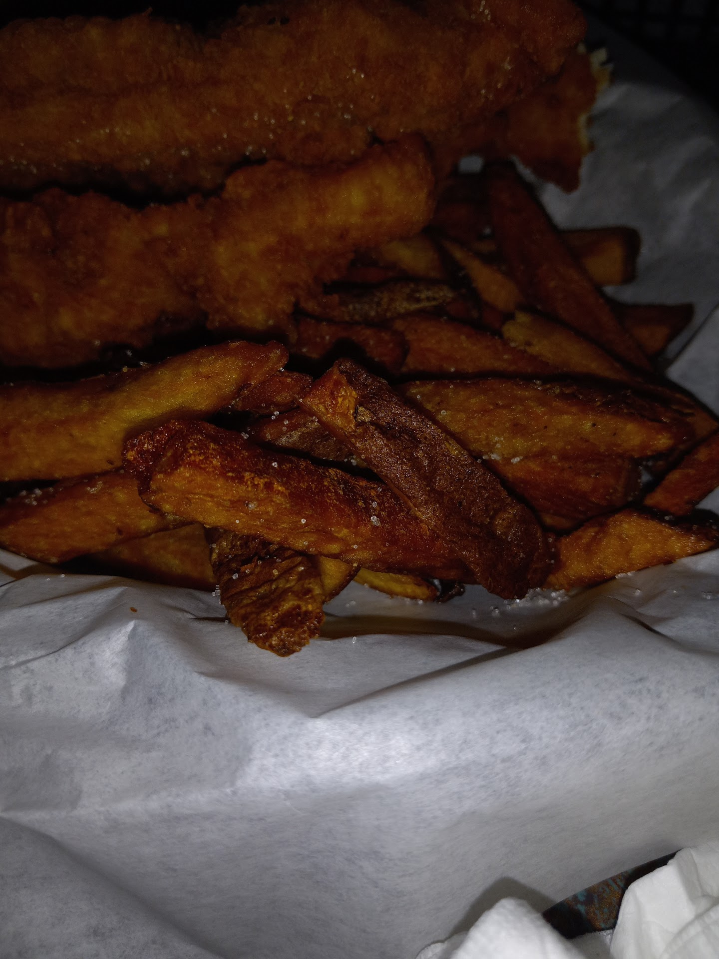 Ā Ā Ā Read moreA sports bar grill should have ok food and was pleased with the results. First off our waitress was really good at explaining the specials and taking our order. She returned several times checking on our drinks etc, very good service. My wife ordered the cod fish and fries. The cod was plentiful but tasteless as it seemed to be just frozen and fried up. We did get tartar sauce which livened the taste a bit. The French fries were fresh but not much taste. I ordered the Mushroom and Swiss Burger, it was surprisingly good, a little zing to it was unexpected but the burger was cooked well and very tasty. They do have military discounts 10%. The atmosphere is your average sports bar but more televisions than I have ever seen and every sport you wanted to watch. I would go back again but not to order the cod fish. We heard they have really good sandwiches so will have to visit again. Additionally this place is dimly lit and not much noise as some sports bars visited which was nice. Prices were good and saw people of all ages there 6...