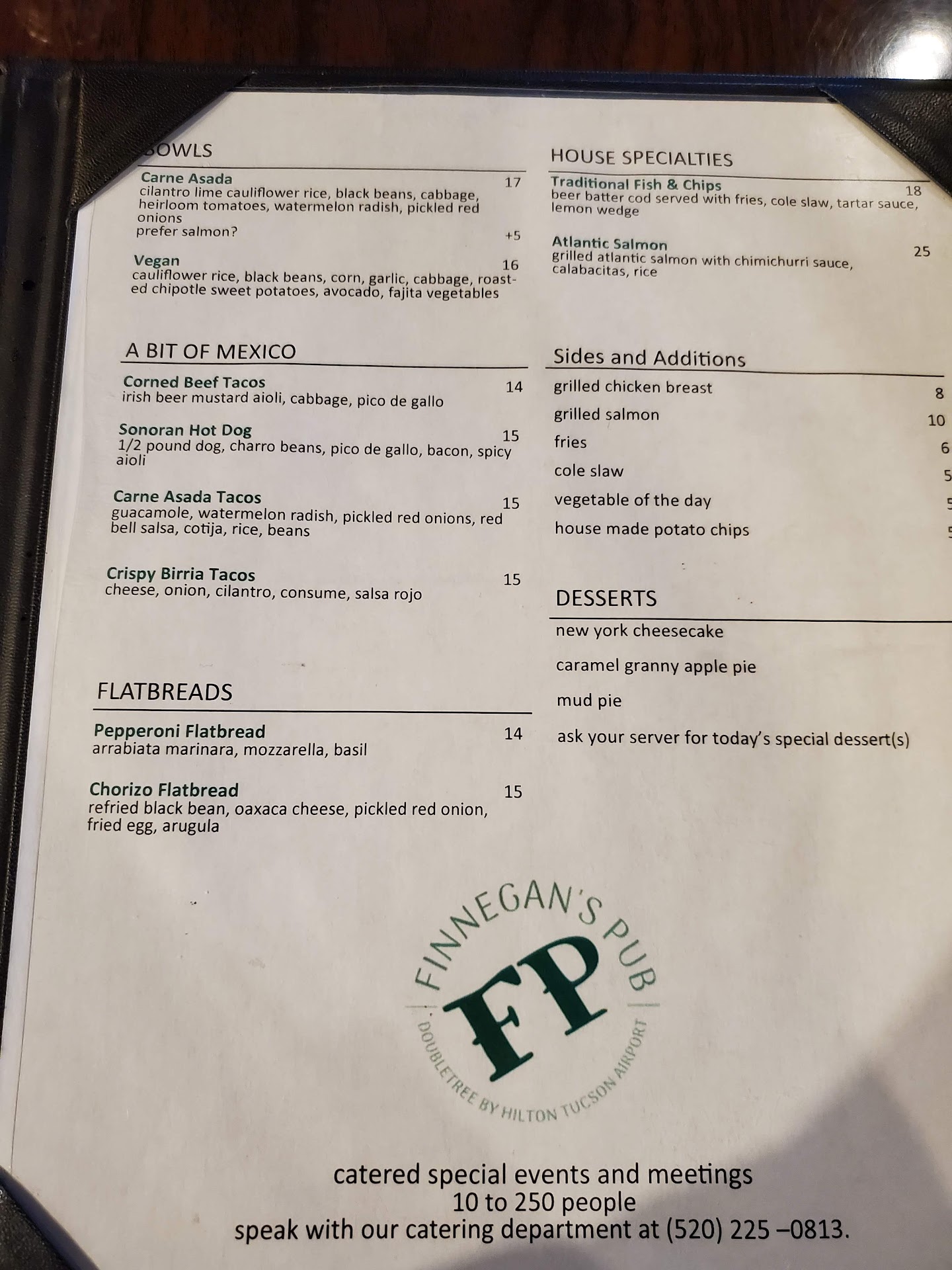 Read moreWhile all but one of the few employees encountered were pleasant, the service was terrible and painfully slow. Was hard to find anyone when you needed assistance as the few that were on duty would disappear to the kitchen, never to be seen until they decided to come out, regardless of what was going on in the dining area. And the one acutely immature employee (who we did speak to the assistant hotel manager, Rebecca, about since the restaurant manager wasn't there), really should be ashamed of herself. If it weren't for the new employee that the immature one was supposed to be training (yes, seriously), we would probably have made a much bigger deal of the absurd situation that person created. It was so ridiculous -- and public -- that more than one other customer came over to us later to ask what the girl's problem was and what caused her to pitch such a "temper tantrum" [their words] and leave (yes, she stomped off after yelling across the dining area while making an immature gesture and never came back). The new employee who was training was the only saving grace and while we sincerely enjoyed interacting with that person, we definitely won't be back. We were staying at the hotel because of a group rate for a [large] event and many of us have stayed there before over the last ~15 years or so because of periodic business in the area. We even held an event there at the hotel many years ago and patronized the pub frequently. Never again will we, or anyone else we spoke to, return. Overall, Finnegan's Pub has certainly changed for the worse over the years (as has the...