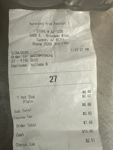 Read moreThe food is great - if you ever get what you ordered. I just had my 4th screw up trying to order food for delivery. First time I clicked "reorder" on my past order that was delivered, went through all the menus and after I confirmed I got a message saying they would let me know when it's ready for pick up. I phoned the store and they said they can't help me since I ordered on the app, that I should click the Cancel button on the app - which doesn't exist. Third time I ordered for delivery - and never got my food, and again the store said not their problem, to contact Five Guys customer service. So I switched to ordering through DoorDash since at least they know how to deliver food. Today I ordered 3 burgers and a shake through DoorDash and when I got the order Five Guys had rung it up as 2 burgers and a shake, so I was missing a burger. Fool me once shame on you, fool me 4 times??? I'm an idiot but at least I've finally learned my lesson. Will never order anything from this Five...