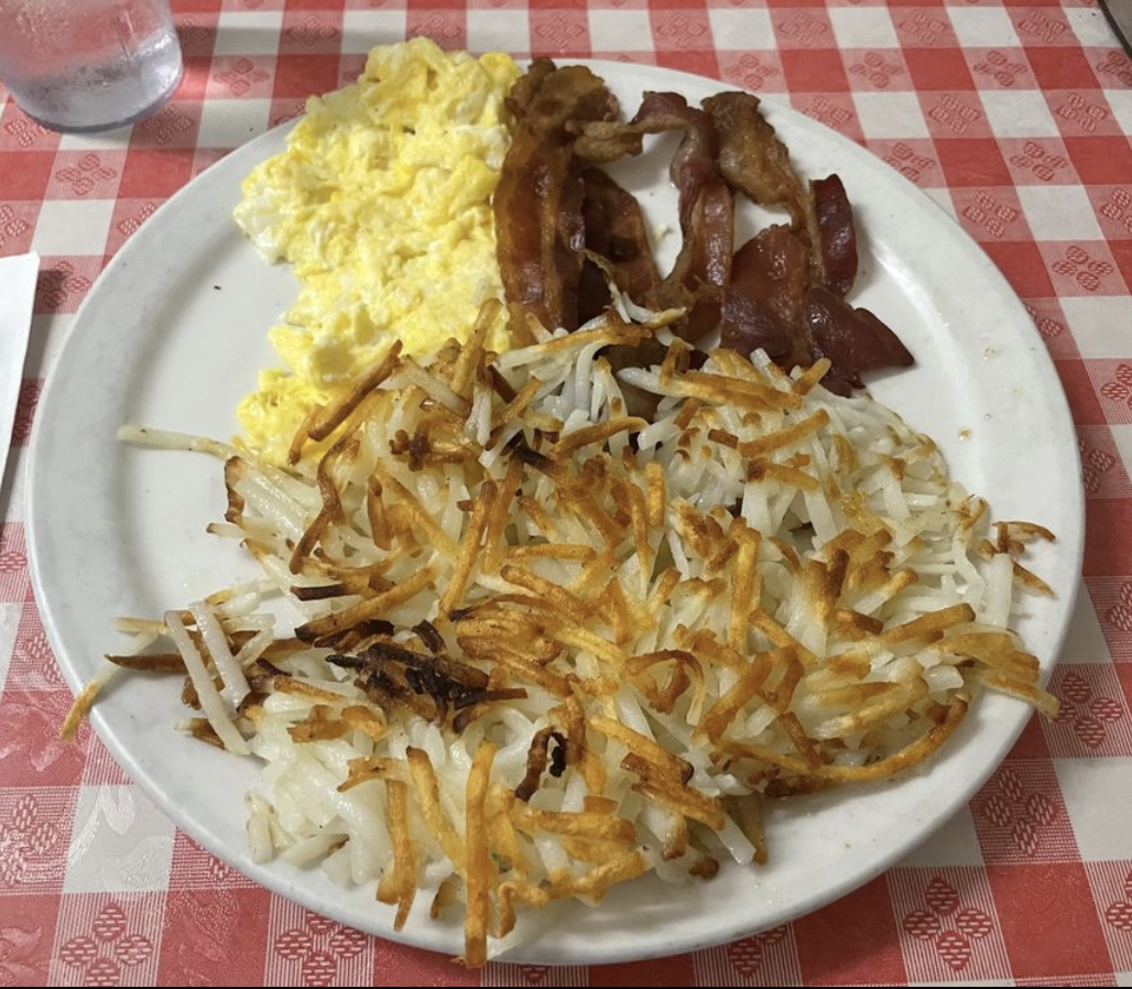 Customer service is at my top priority when I rate though, so this place still gets high remarks for how the staff treated us. They kept a cool head through the chaos, and gave us exactly the order we wanted. With so many people, I feared it wouldn't come out right. But they served what I ordered, which was scrambled eggs & bacon with a side of hash browns and white, buttered toast (Tip: Try the grape jelly with the toast. It's delicious!).